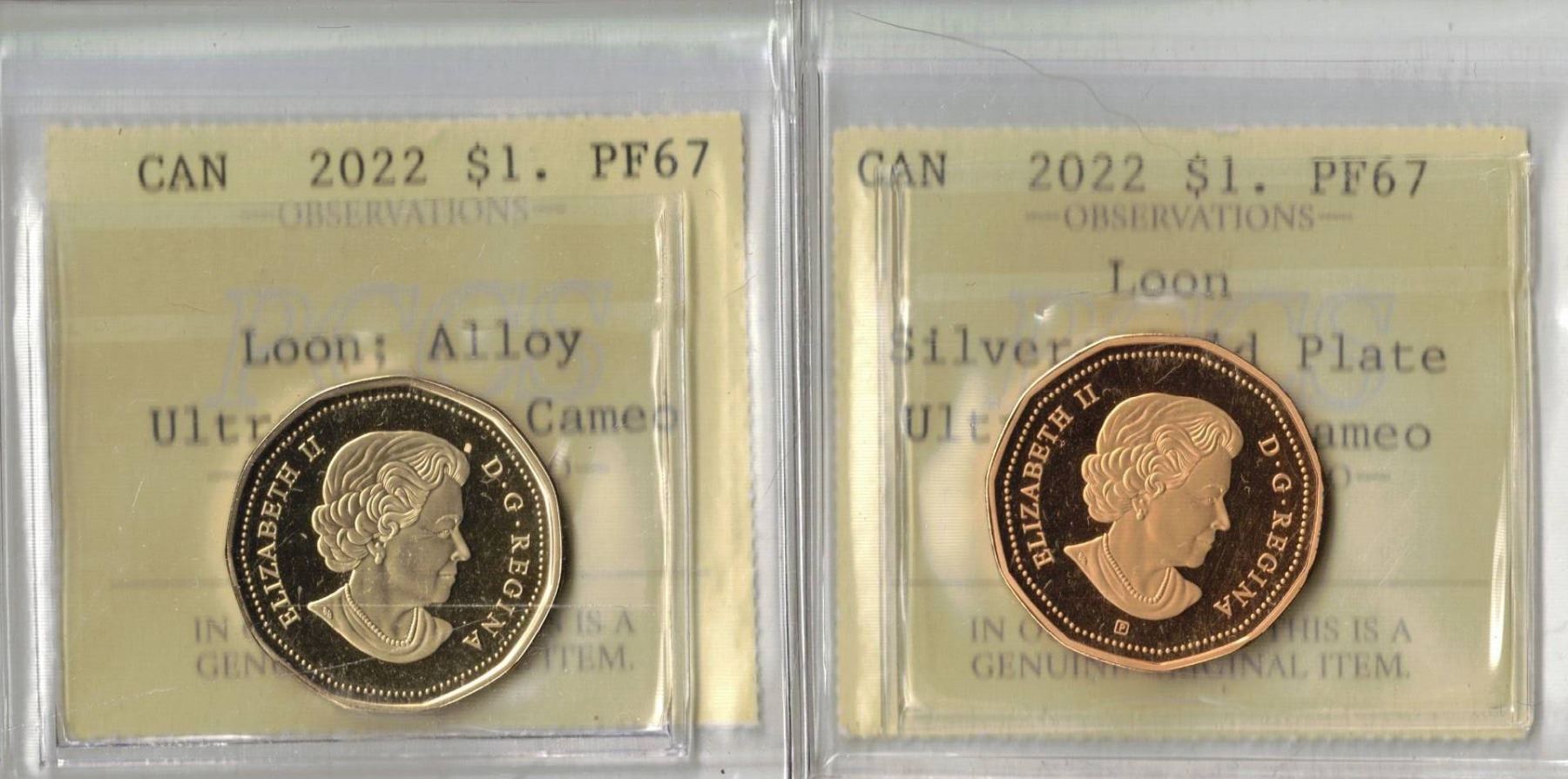 2022 $1 Loon; Alloy Ultra Heavy Cameo PF67, 2022 $1 Loon; Silver; Gold Plate Ultra Heavy Cameo PF67