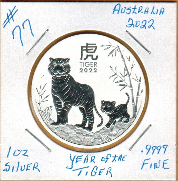 2022 1 OUNCE SILVER - .9999 FINE SILVER - AUSTRALIA - YEAR of the TIGER