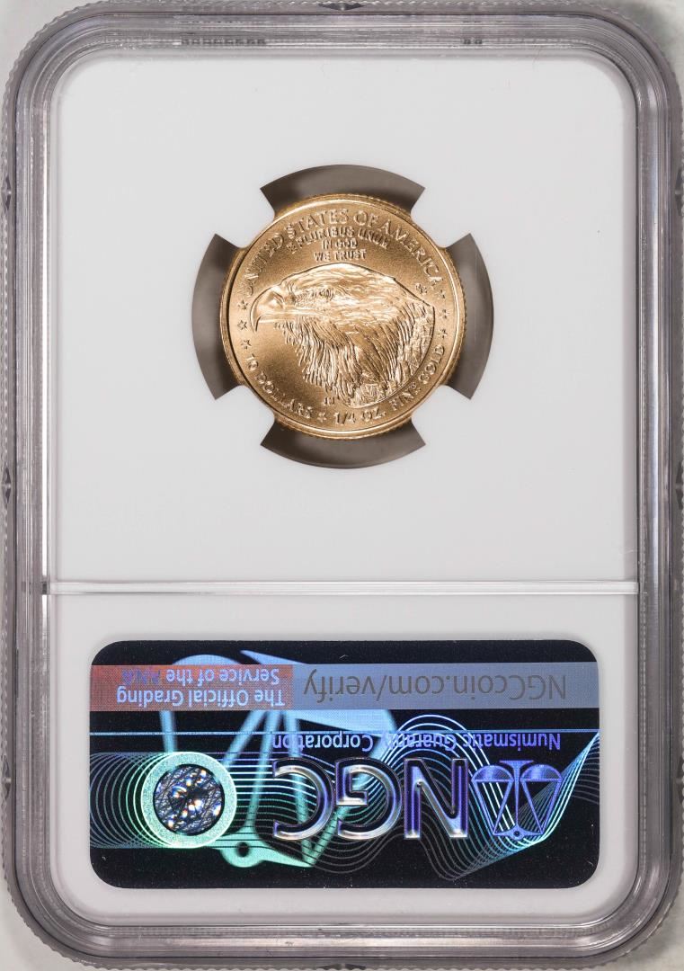 One 2022 $10 American Gold Eagle Coin NGC MS70 FDOI Reagan Legacy Series Signature. NGC Certified.