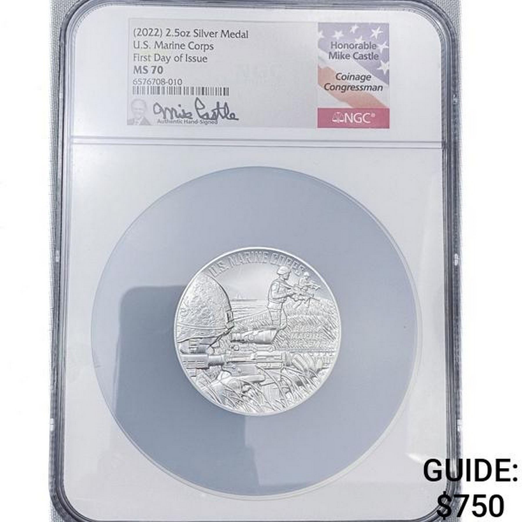 2022 2.5oz Silver US Marine Corps Medal NGC MS70