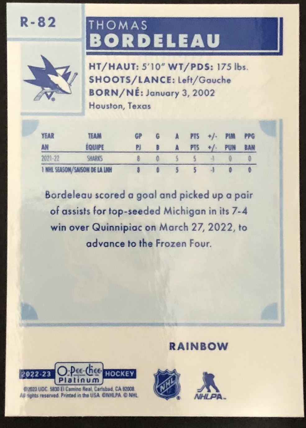 Card #R-82 NHL hockey, OPC, rookie