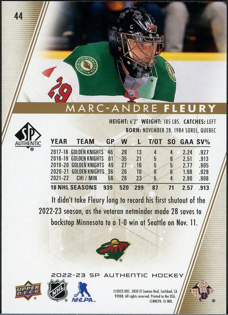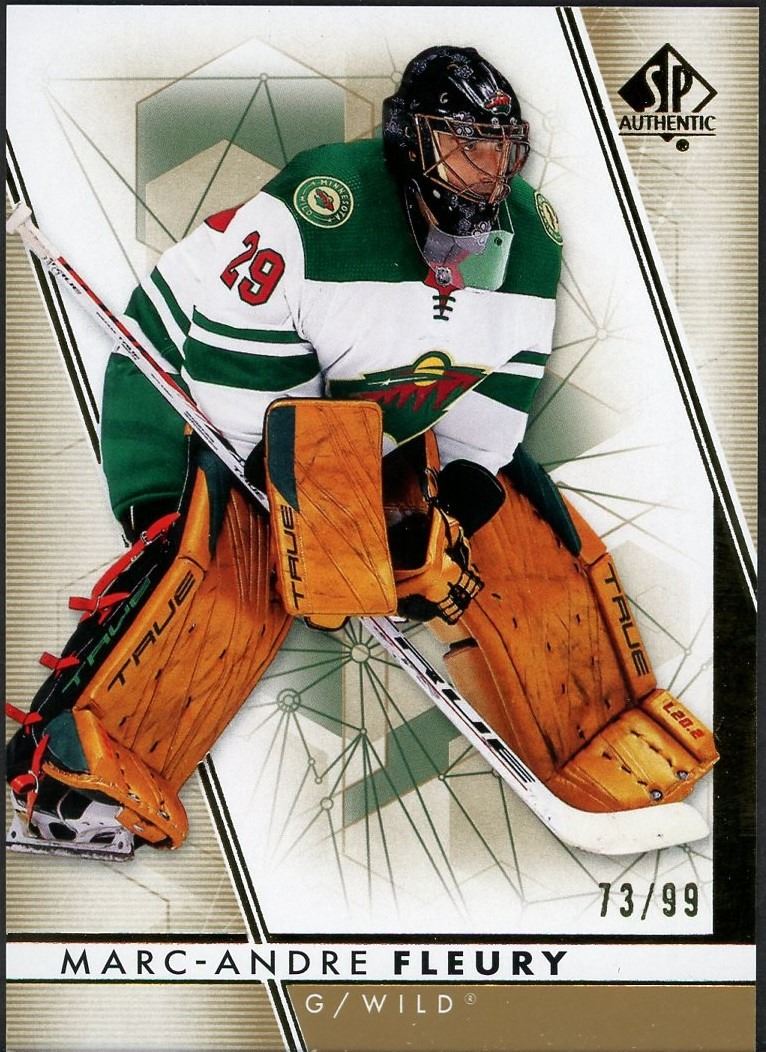 Low Numbered SPA gold card of future hall of fame goalie Marc-Andre Fleury
