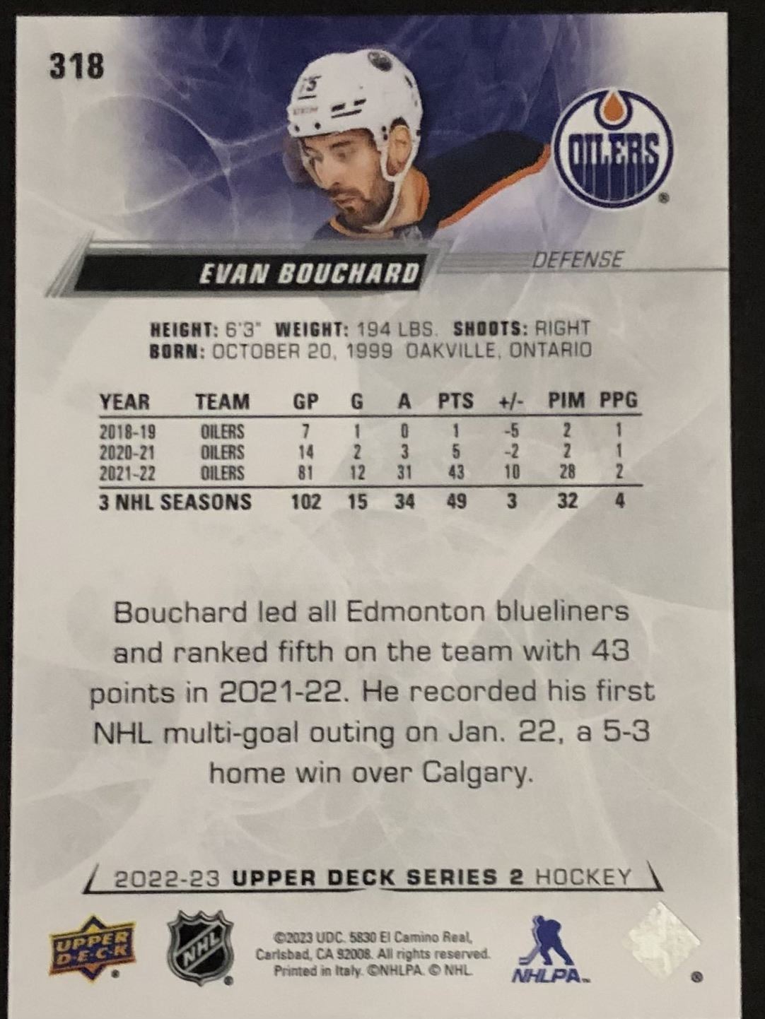 Card #318 hockey, NHL, UD