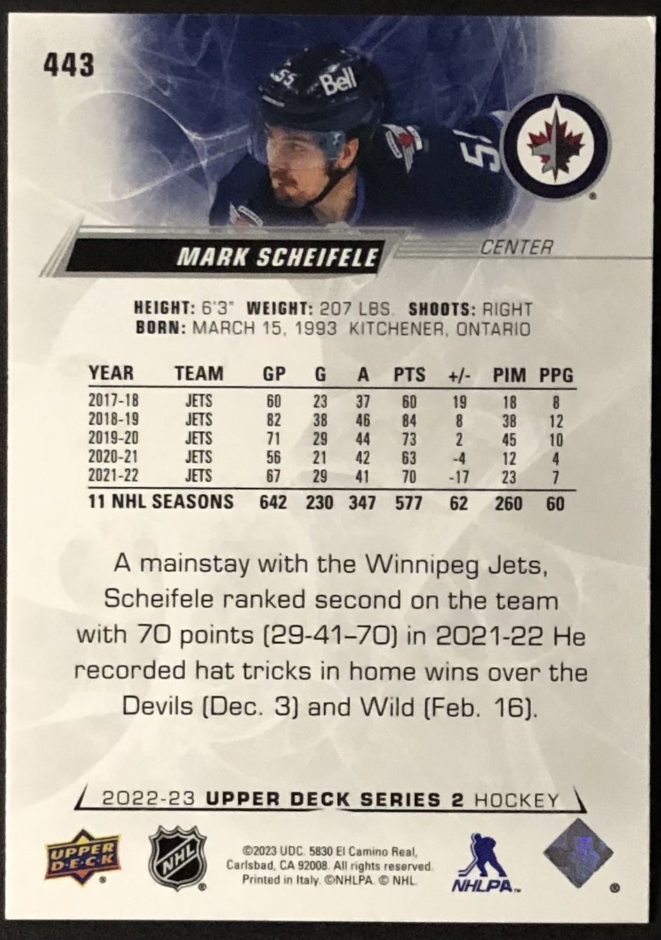 Card #443 hockey, NHL, UD