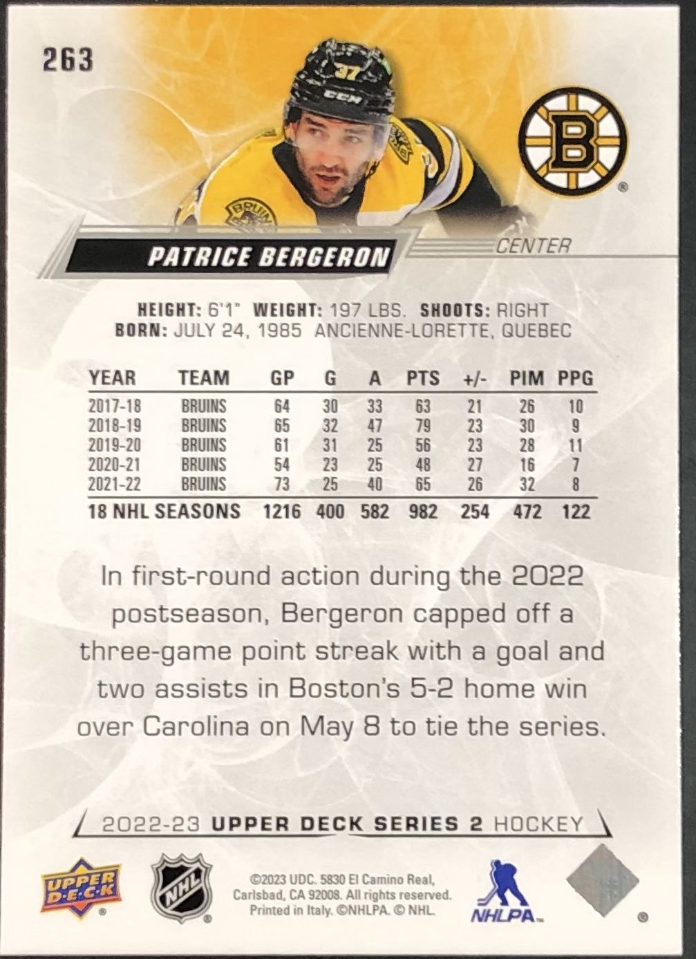 Card #263 UD, NHL, hockey