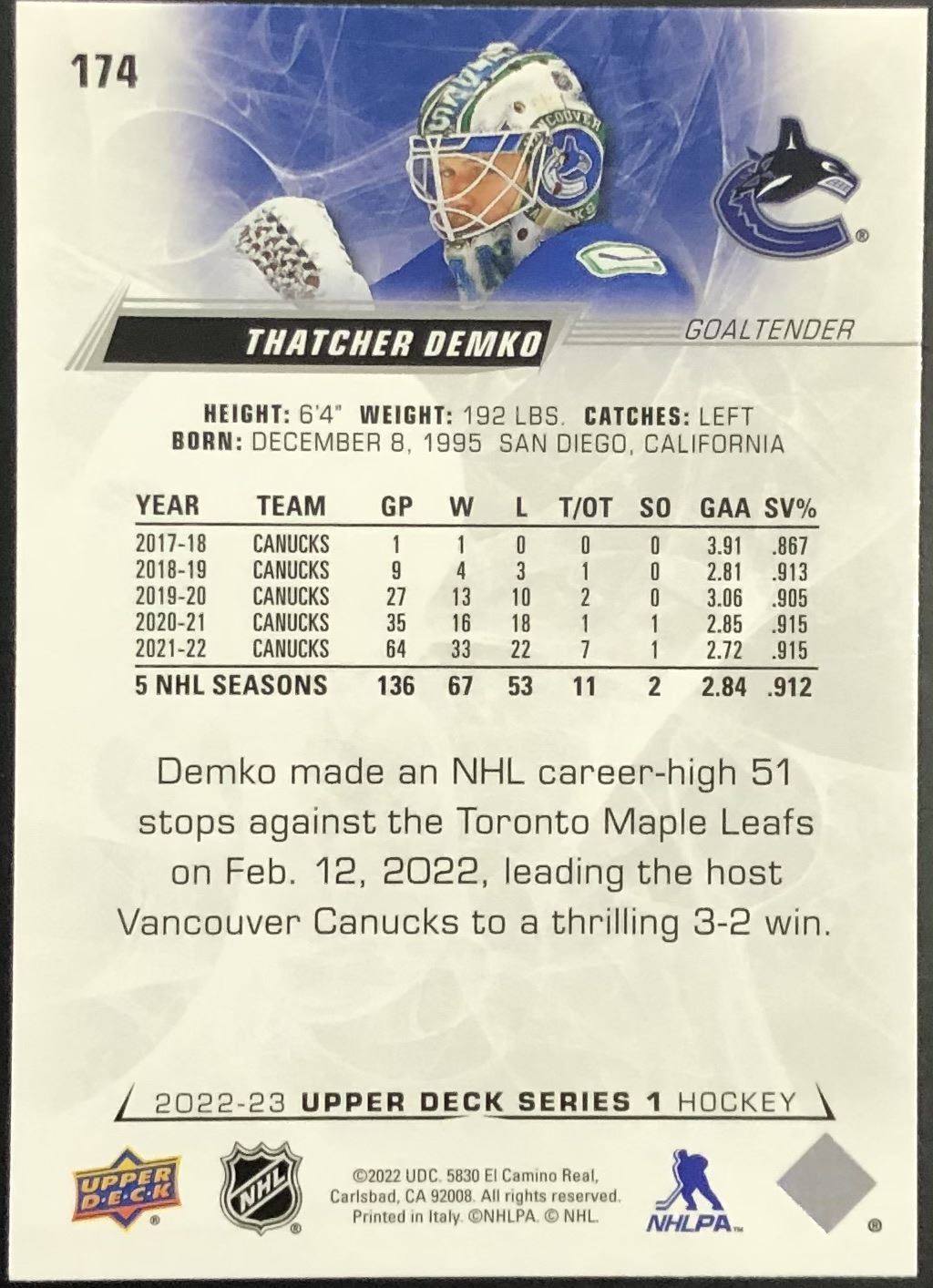 Card #174 NHL, hockey, UD