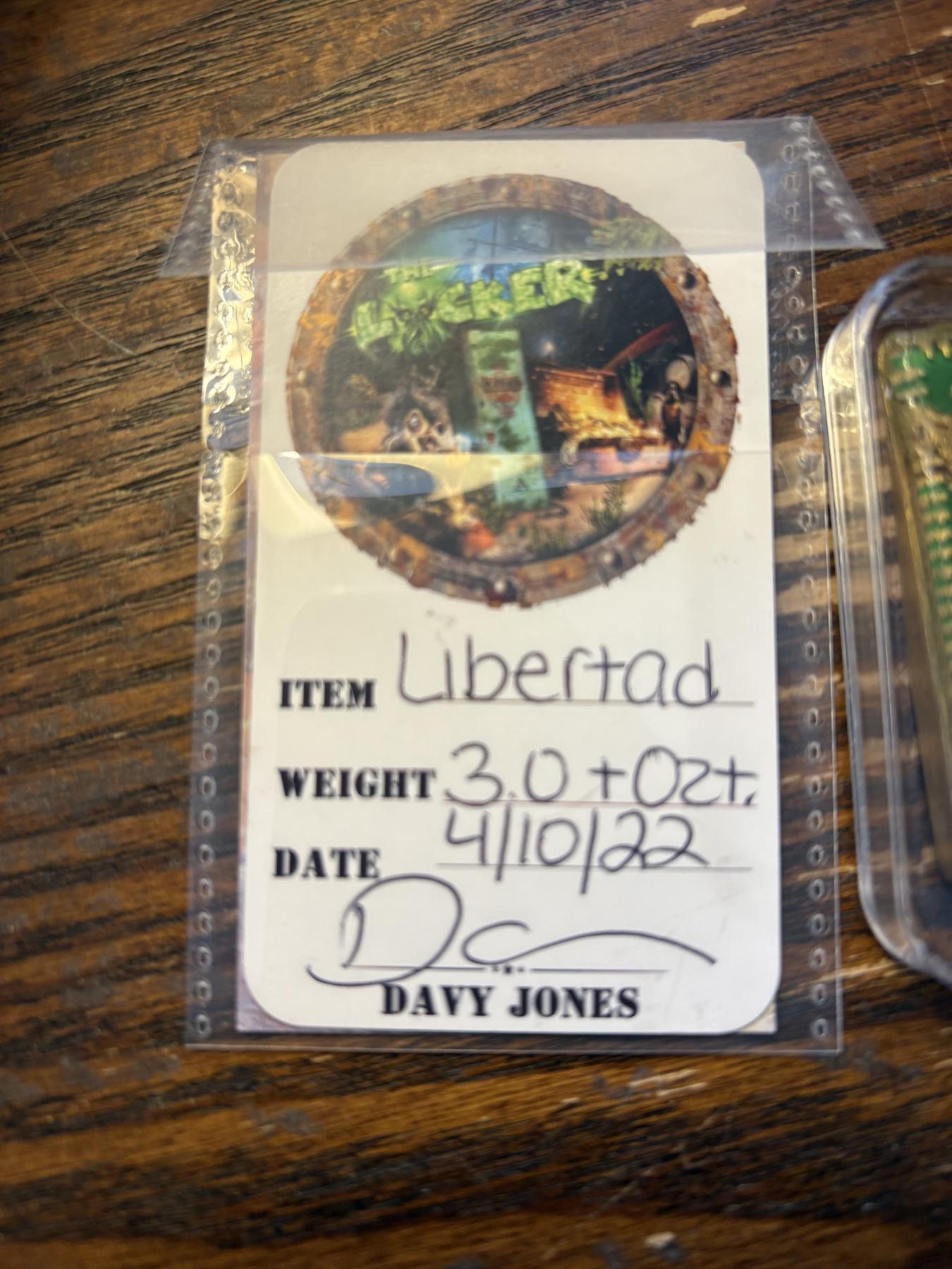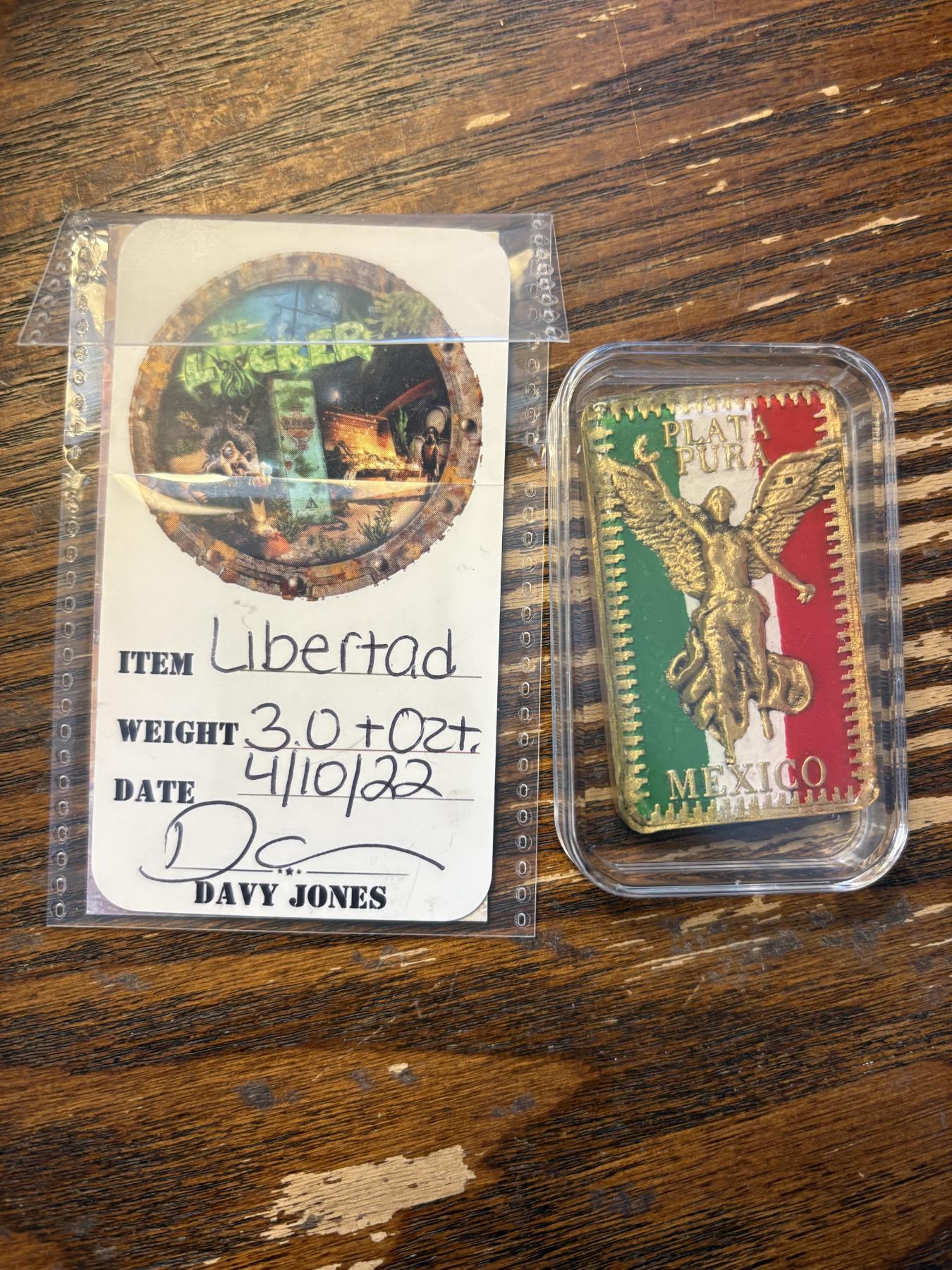 2022 3 Troy Oz. Bar - Libertad Davy Jones Mexico - Plata Pura - Faces of Illusion Studios Certificate of Authenticity - Encapsulated