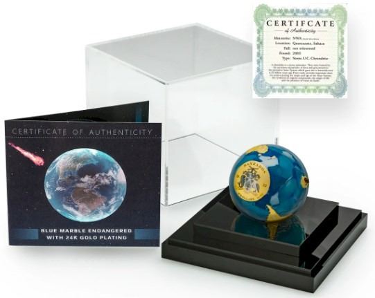 2022 $5 Blue Marble: Endangered Meteorite From Space - Pure Silver Coin. Tax Exempt.