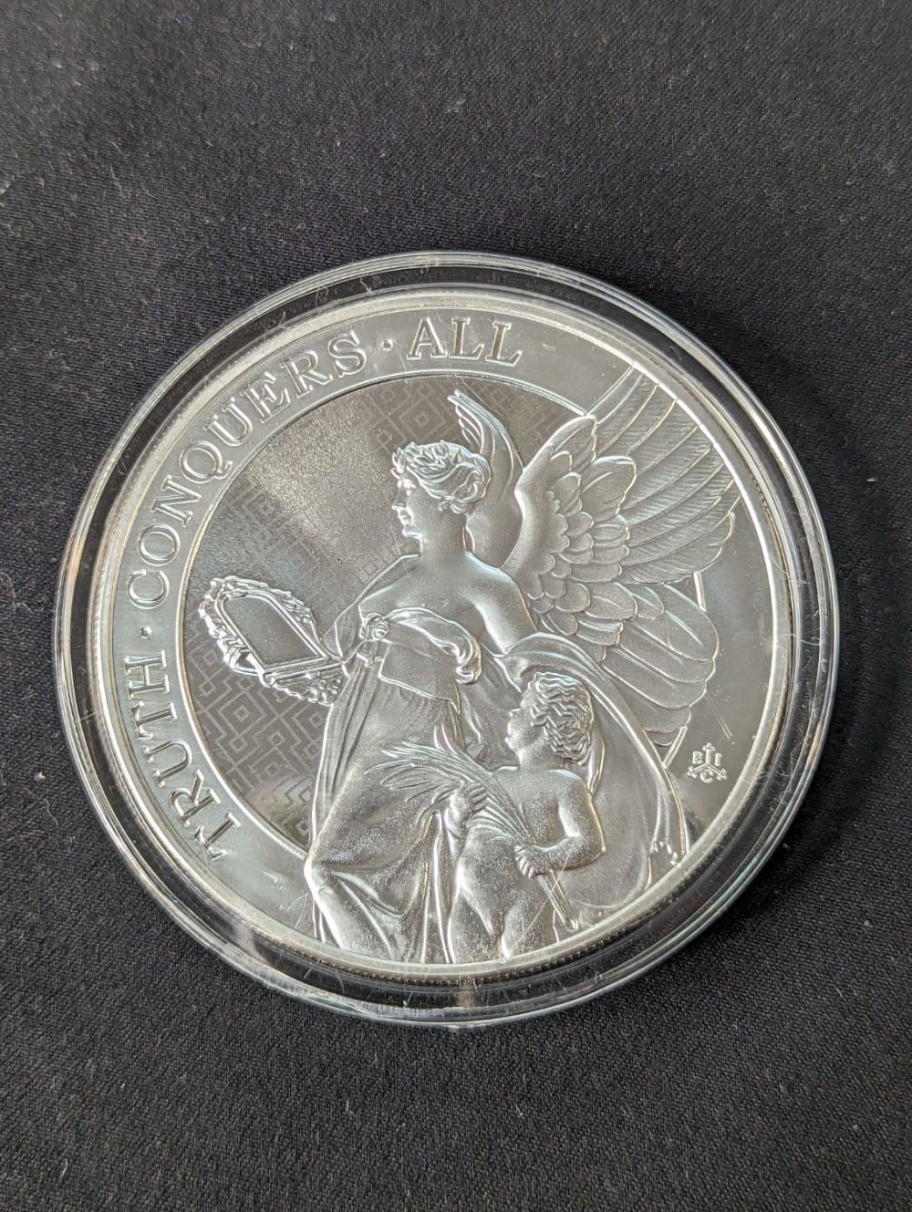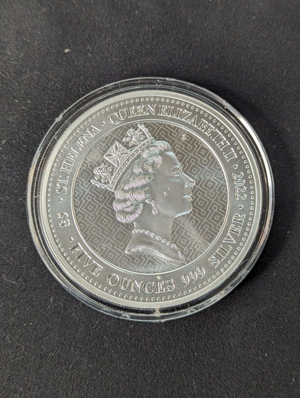 A 2022 St, Helena Queen Elizabeth .999 5 Troy Ounces Pure Silver coin.& nbsp;& nbsp;