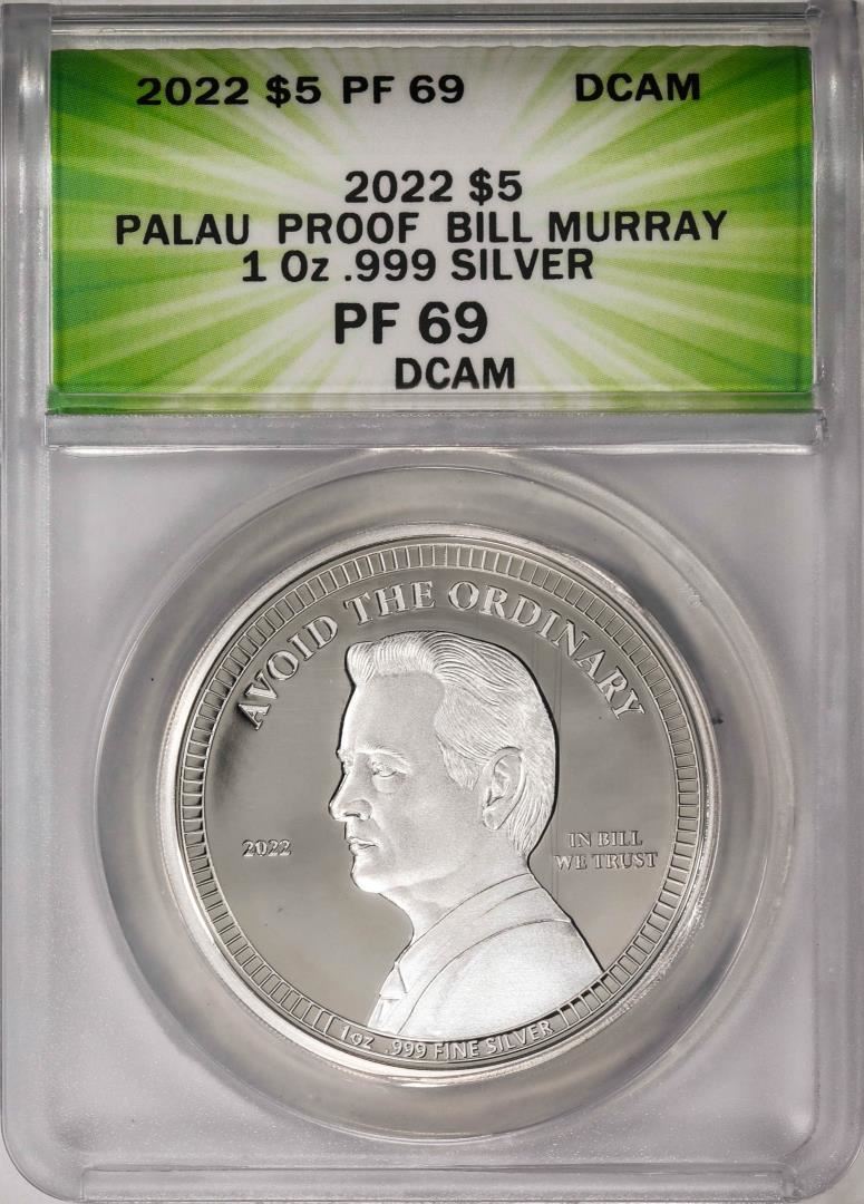 One 2022 $5 Palau Proof Bill Murray Silver Coin ANACS PF69DCAM. ANACS Certified.