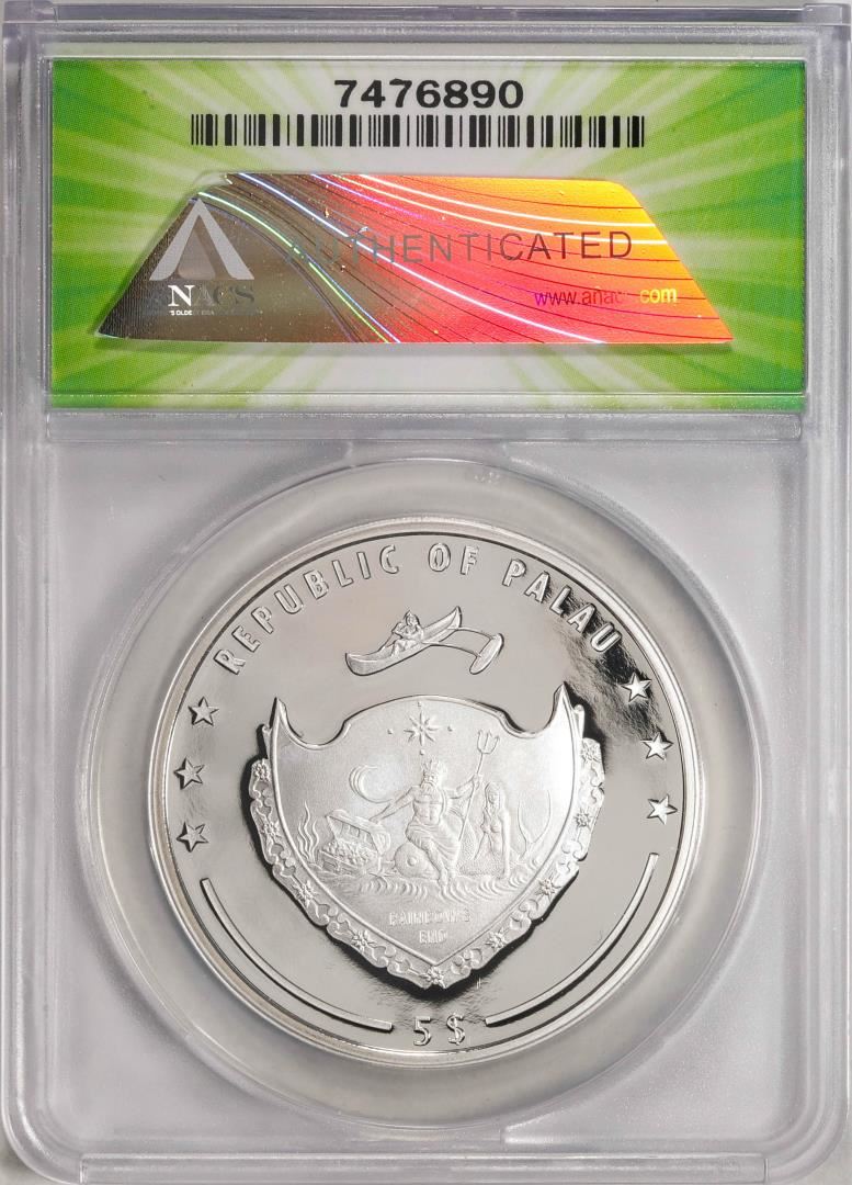 One 2022 $5 Palau Proof Chris Farley Silver Coin ANACS PF69DCAM. ANACS Certified.