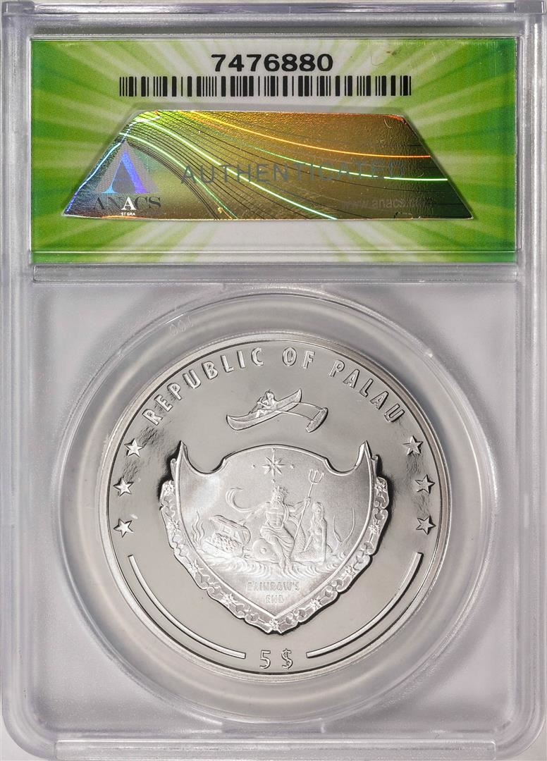 One 2022 $5 Palau Proof Chris Farley Silver Coin ANACS PF70DCAM. ANACS Certified.