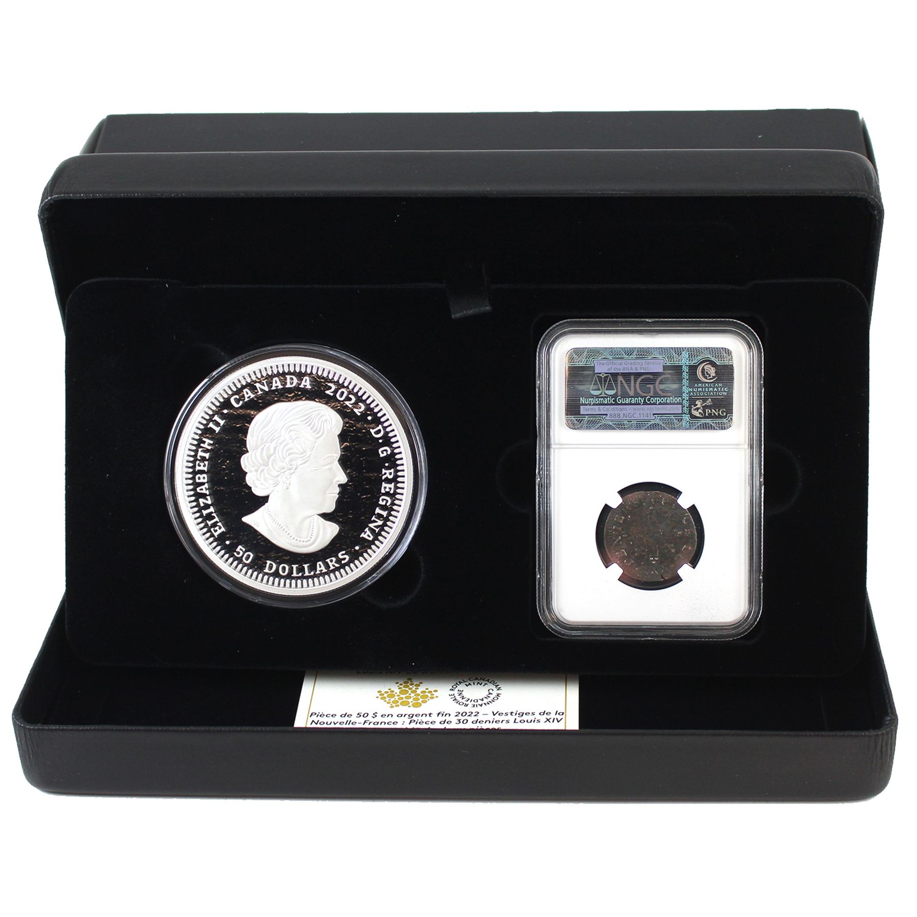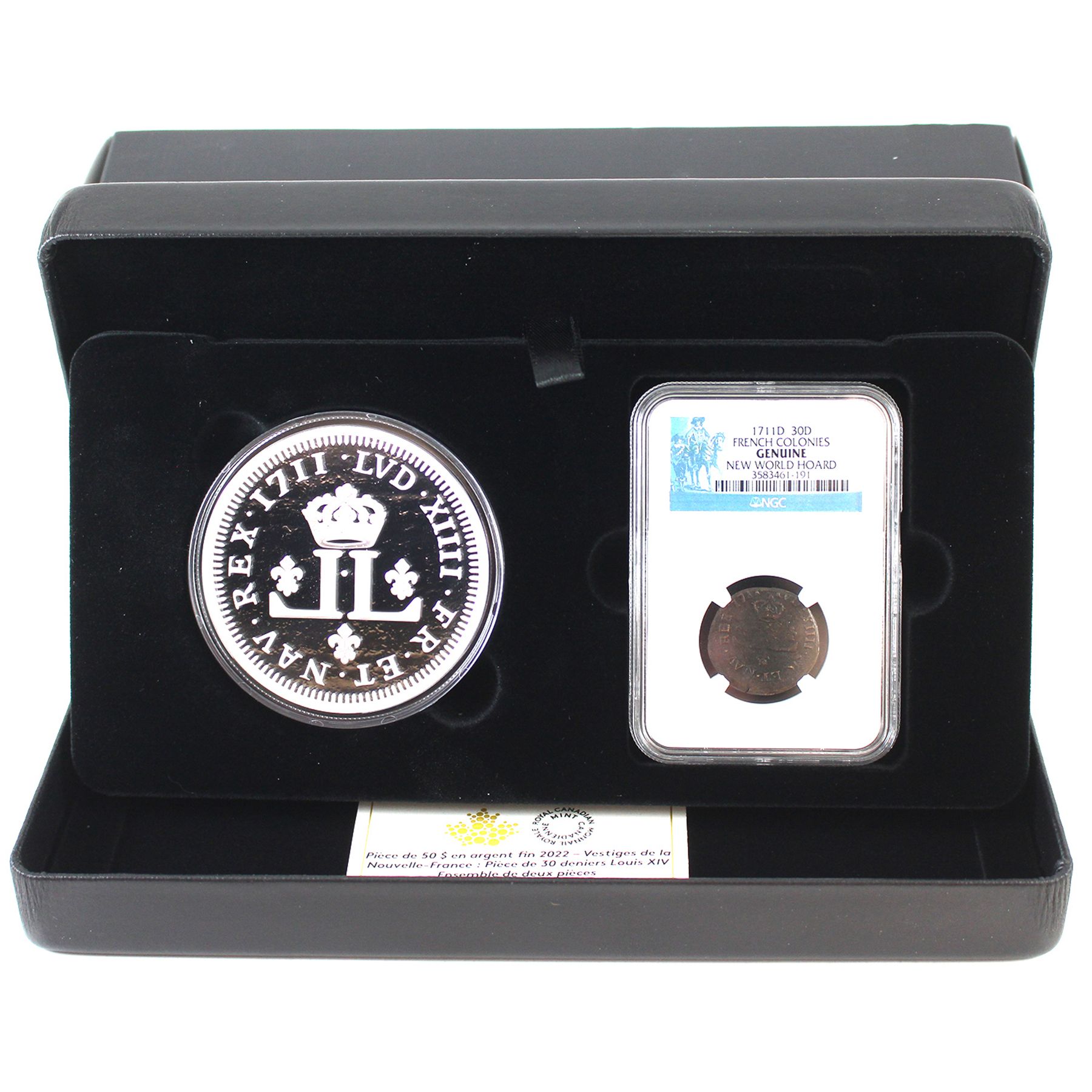 Limited Mintage of 1250 Only! INCLUDES: 2022 5oz .9999 Fine Silver Replica & genuine 30 Deniers piece in authenticated holder. Minor wear to outer beauty box (Tax Exempt)