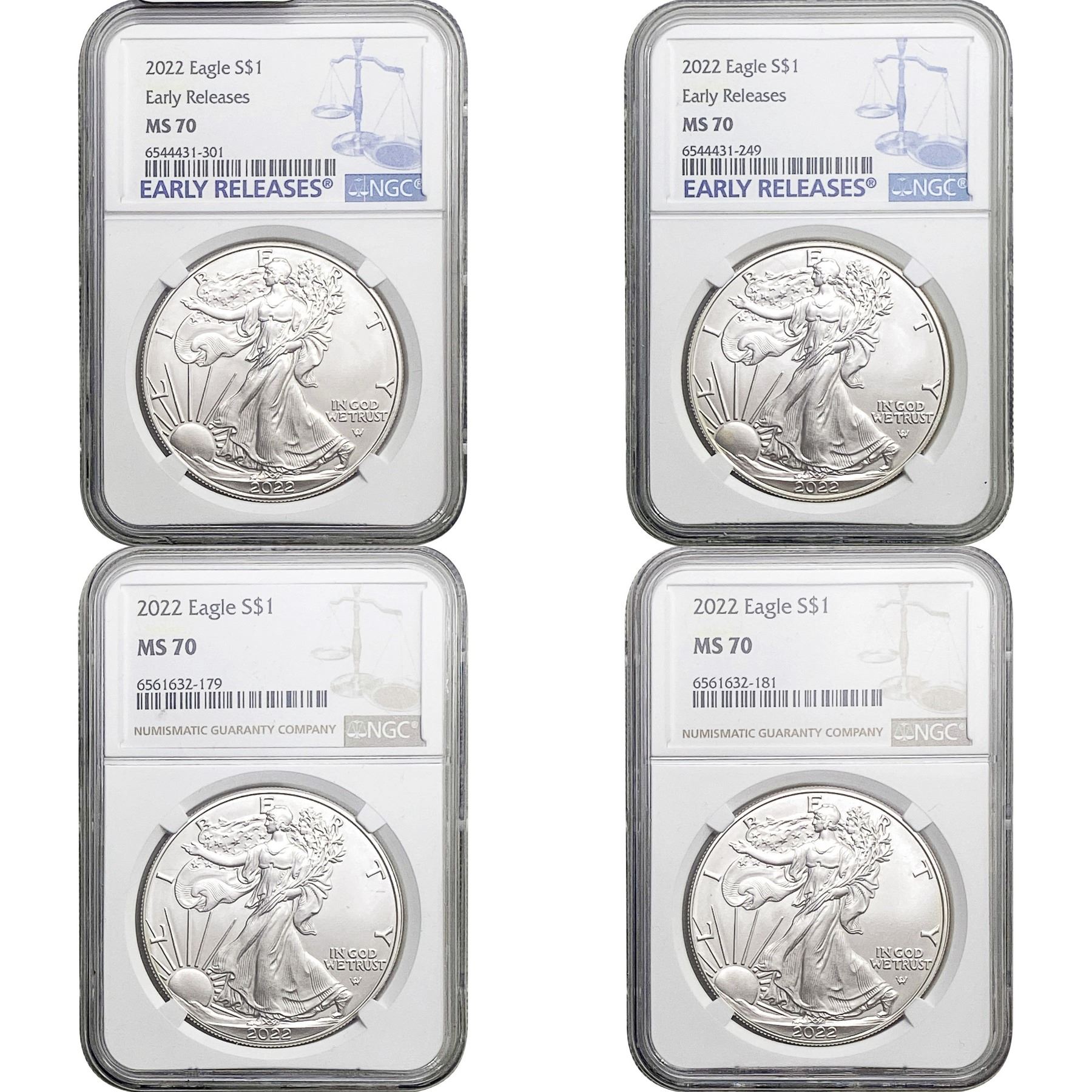2022 American Silver Eagle Lot [4 Coins] NGC MS70