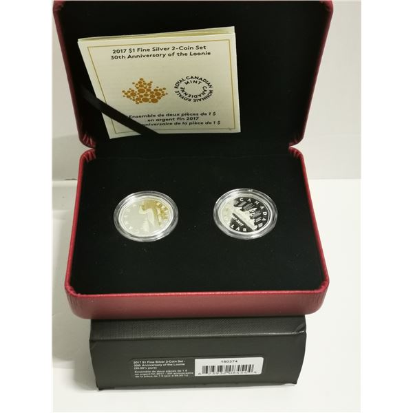 2017 $1 FINE SILVER 2 COIN SET 30TH ANNIVERSAY OF THE LOONIE69 - 2017 $1 FINE SILVER 2 COIN SET 30TH ANNIVERSAY OF THE LOONIE