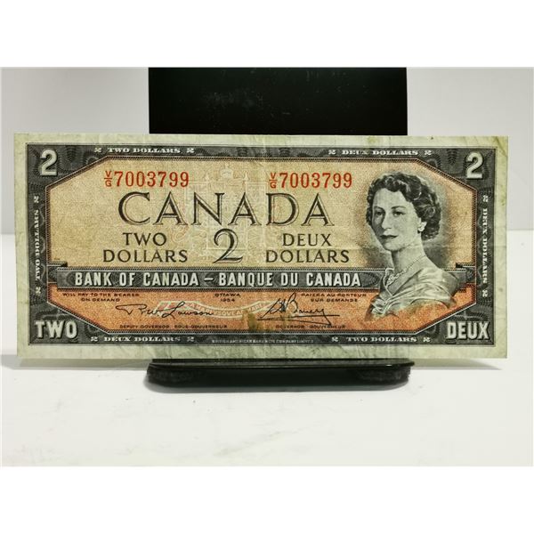 1954 CANADA $2 DOLLAR BILL BANK NOTE80 - 1954 CANADA $2 DOLLAR BILL BANK NOTE