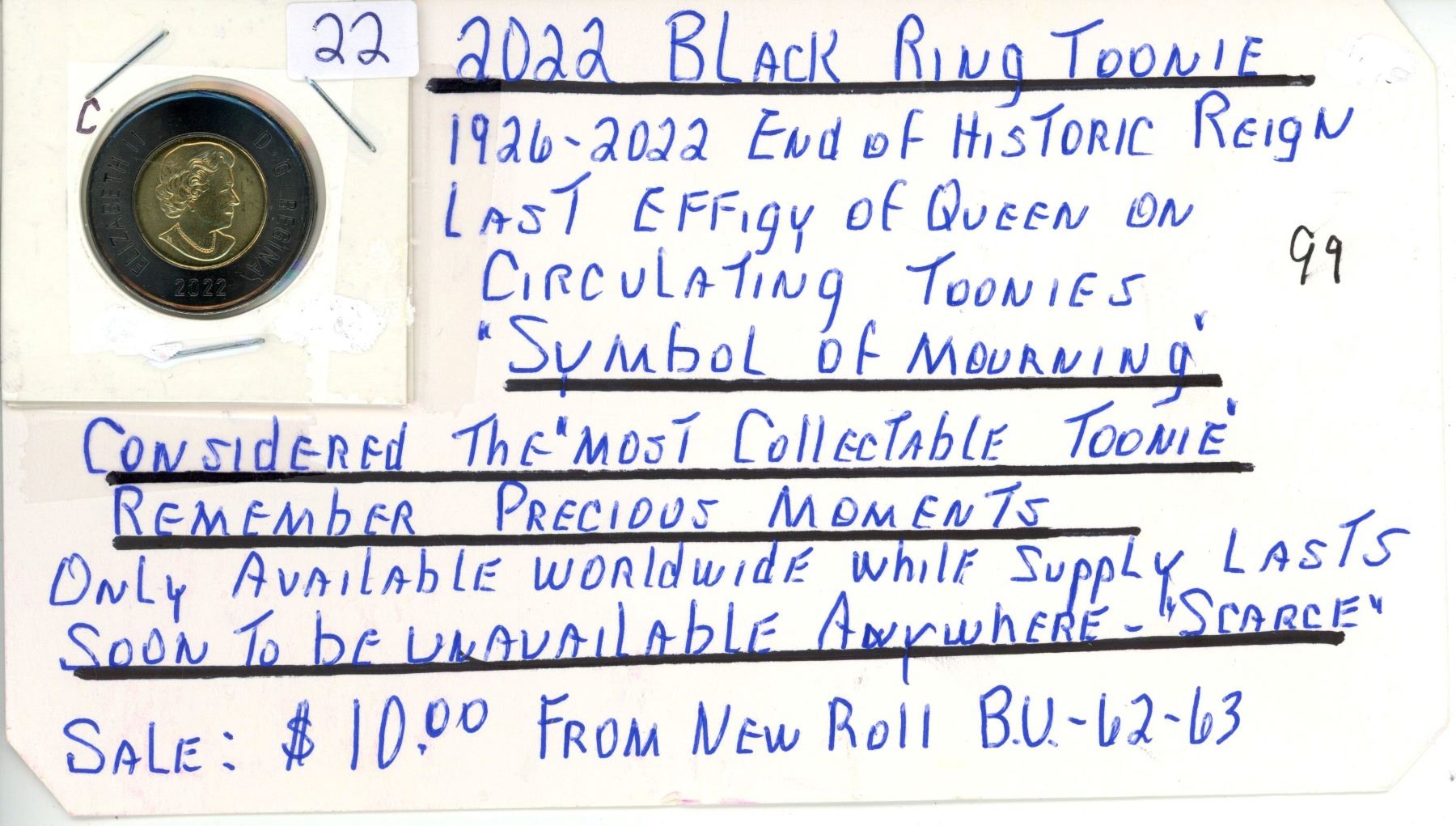 2022 Canadian 2 dollar coin - Black toonie, symbol of mourning