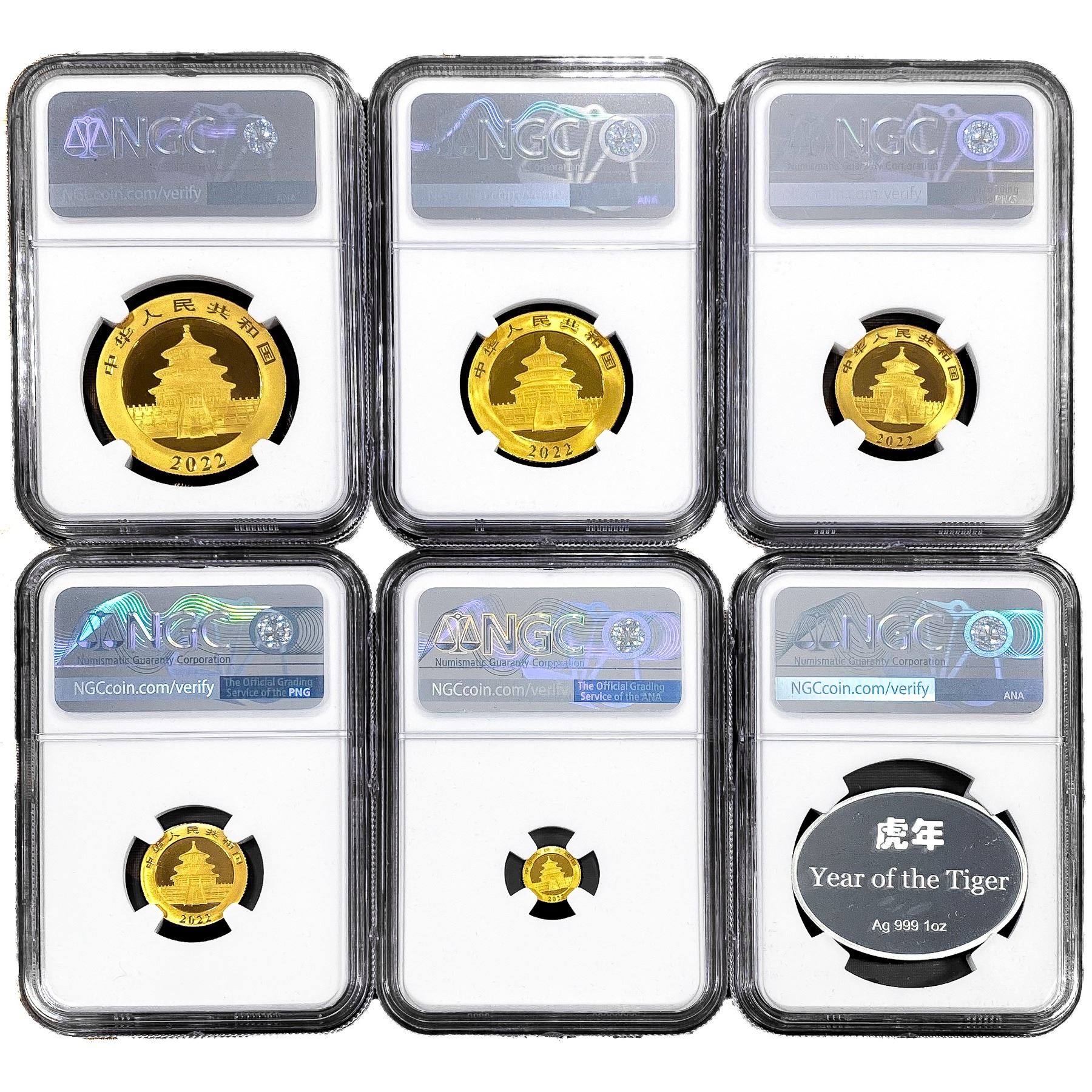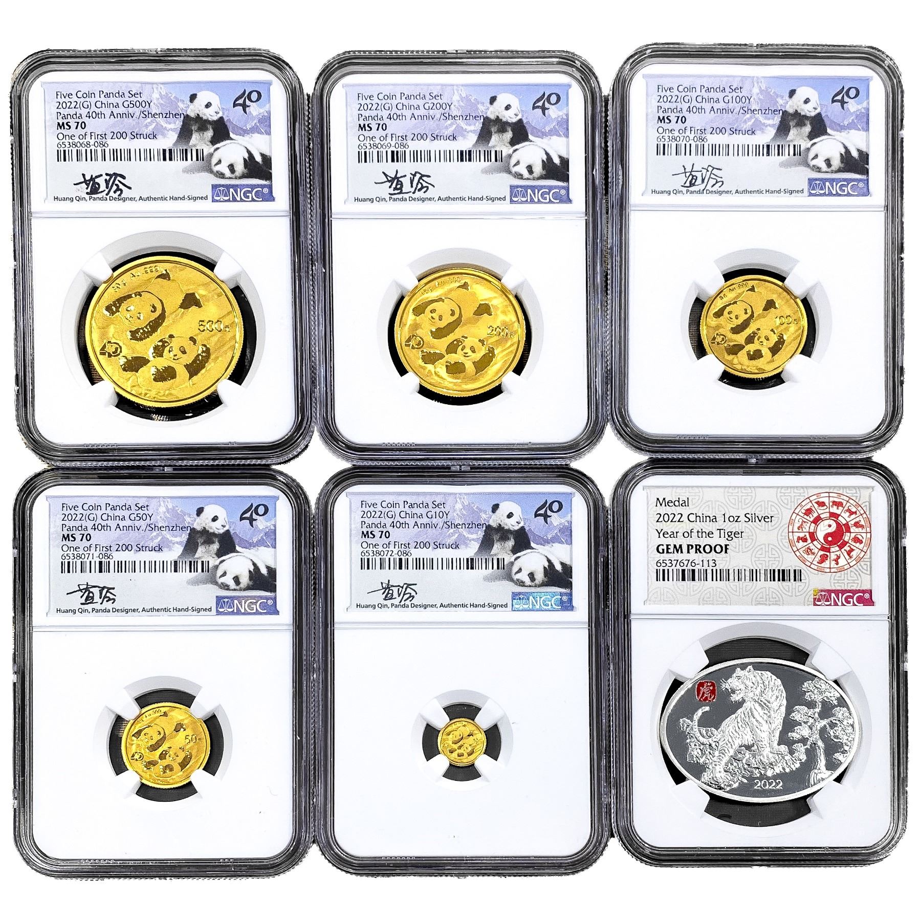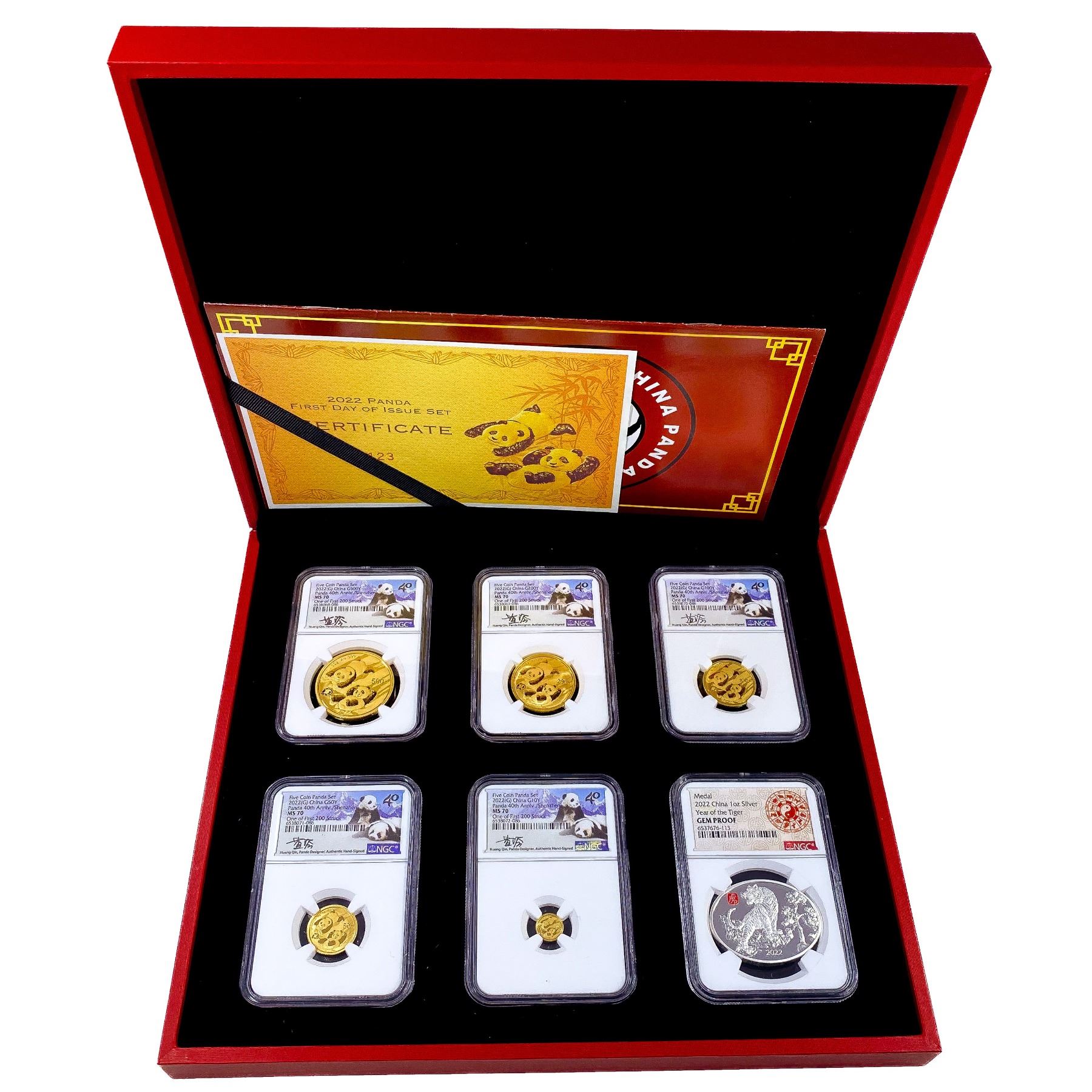 2022 China 5PC Gold Pandas and 1oz Silver Medal FD