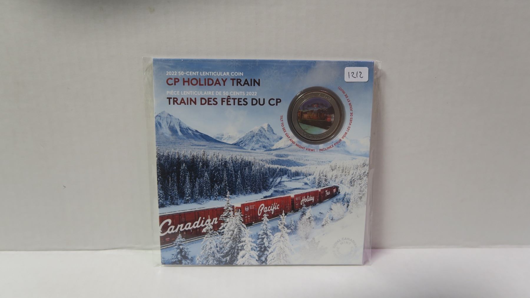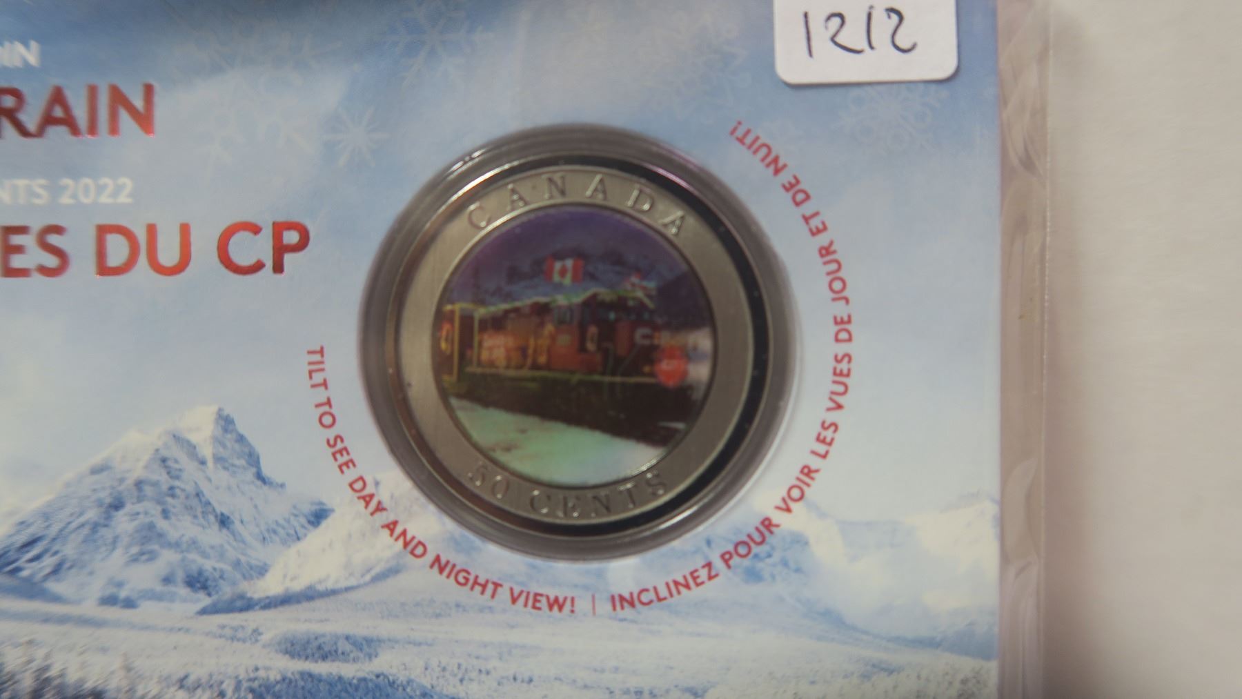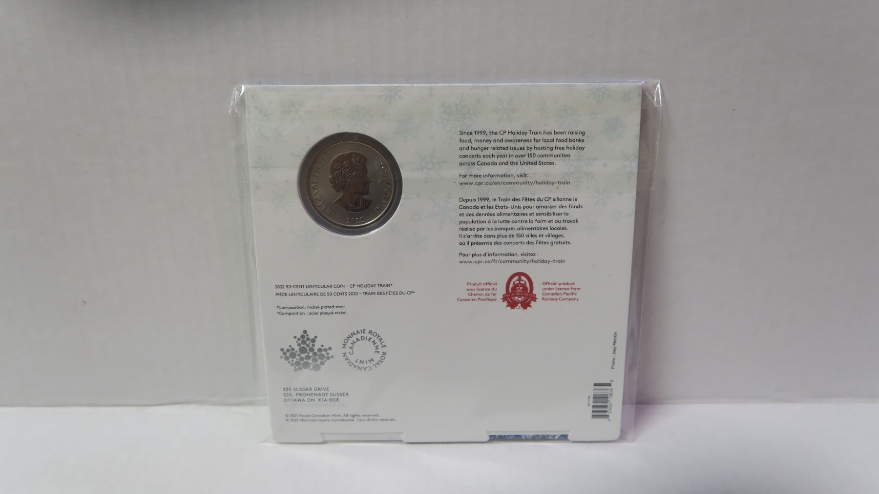 2022 Colourized CP Holiday Train 50 Cents. Coin is Lenticular: you can see day or night views by tilting the coin. Specimen. Housed in original folder.