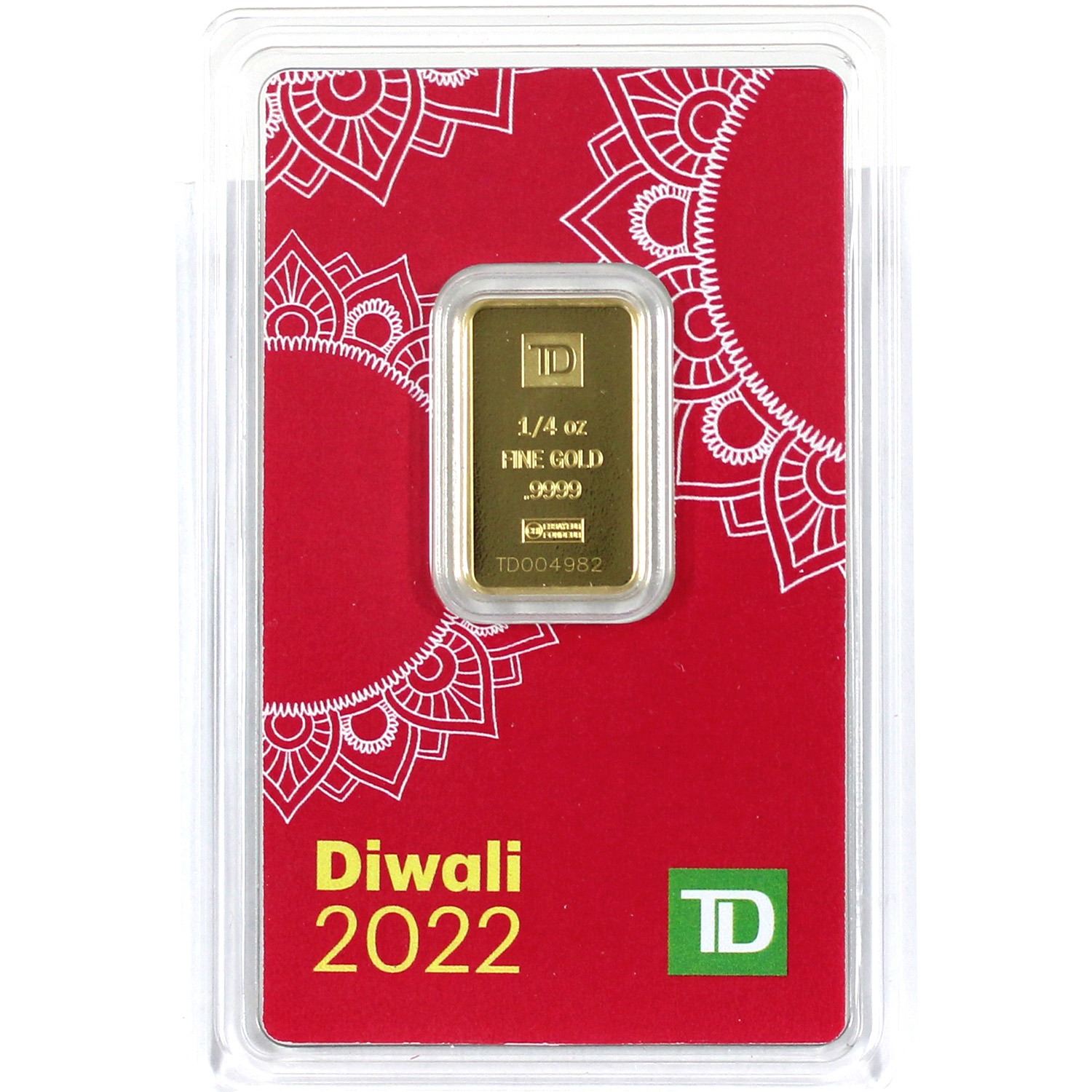 2022 Diwali 1/4oz TD Bank .9999 Fine Gold Bar in Hard Plastic Certificate (Tax Exempt)