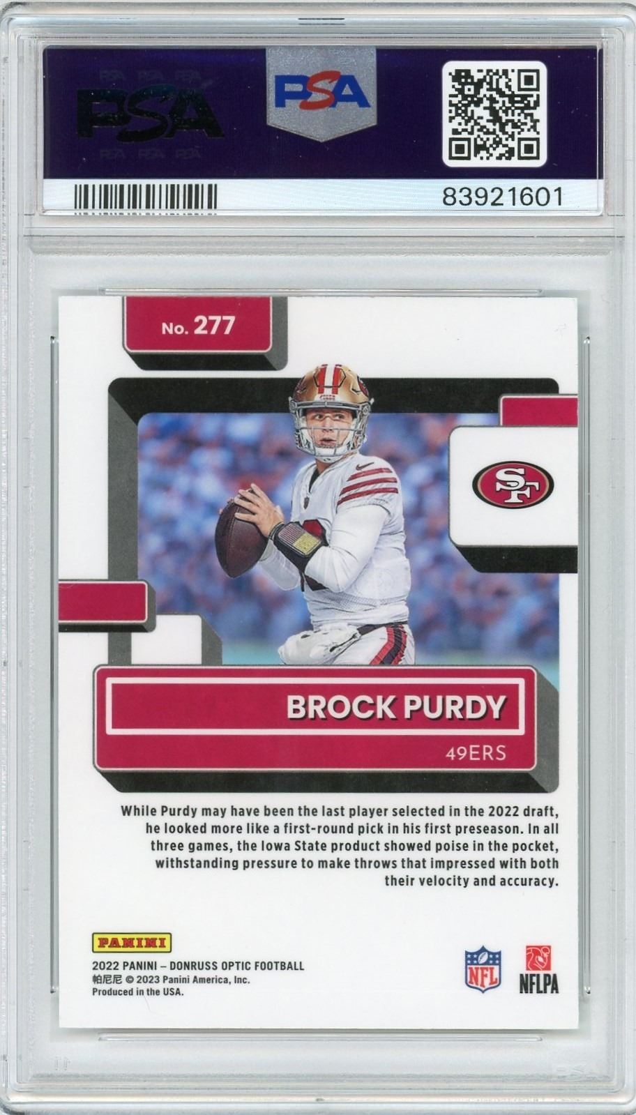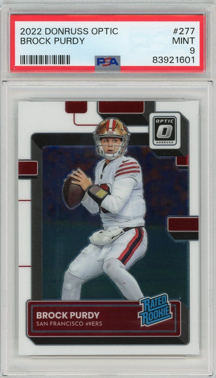 Optic Rated Rookie of consensus favorite for 2023/24 NFL MVP Brock Purdy of the San Franciso 49ers. Graded a 9 by PSA! Excellent investment card!