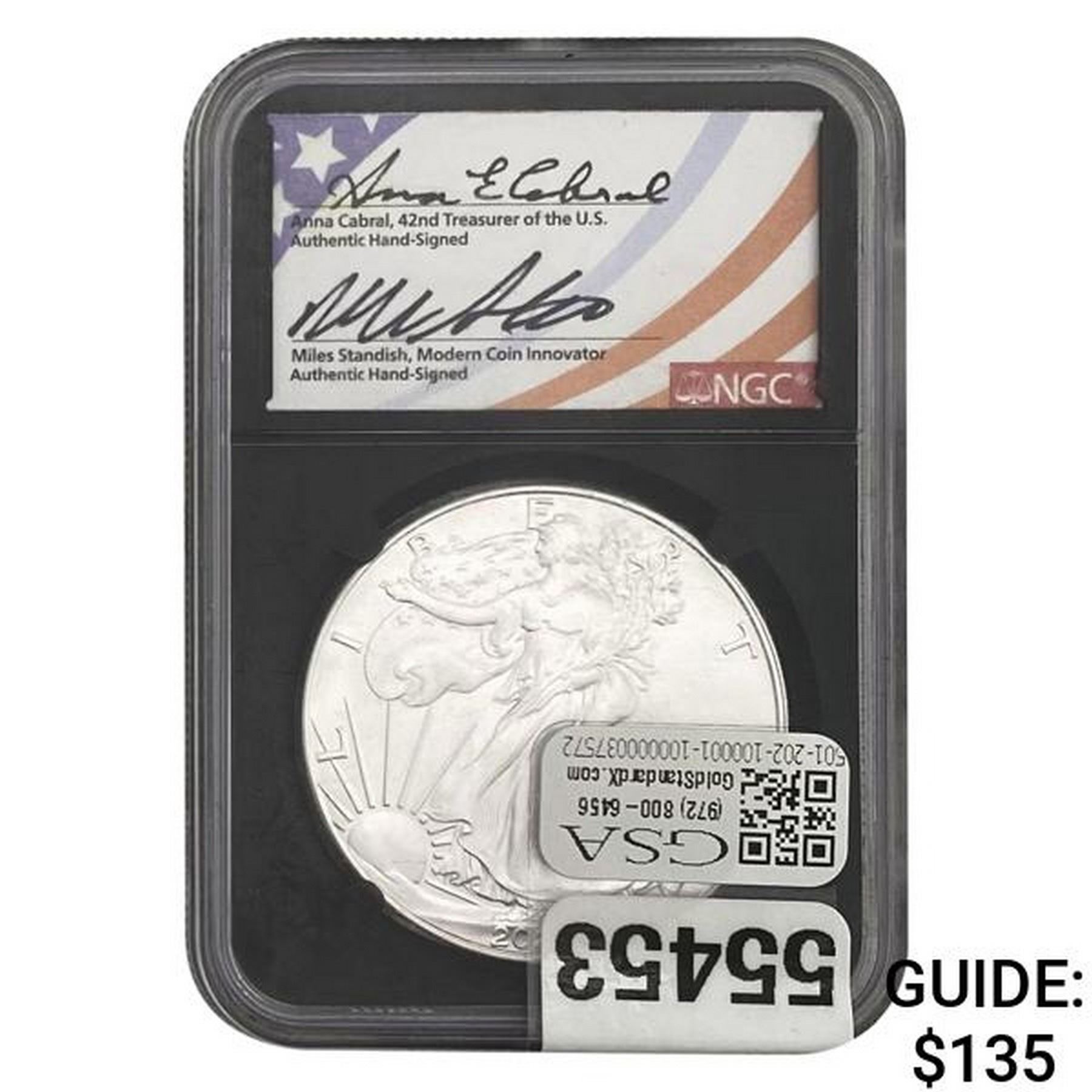COINS AND CURRENCY LISTED IN GSA’S CATALOG AS GRADED AND ENCAPSULATED BY PCGS, NGC, ANACS, ICG, PCGS CURRENCY, PMG, PCGS BANKNOTE GRADING, CMC OR ANY OTHER THIRD-PARTY GRADING SERVICE ARE LIKEWISE SOLD “AS-IS” EXCEPT AS EXPRESSLY SET FORTH HEREIN. ALL THIRD-PARTY GRADING SERVICE GUARANTEES, INCLUDING AUTHENTICITY, ARE THE SOLE RESPONSIBILITY OF THE THIRD-PARTY GRADING SERVICE AND NOT WARRANTIES OR GUARANTEES OF GSA. BIDDERS SHOULD CONTACT THESE THIRD-PARTY GRADING SERVICES DIRECTLY WITH RESPECT TO ANY CLAIMS OR QUESTIONS THEY MAY HAVE CONCERNING THEIR GUARANTEES AND WARRANTIES. BIDDERS ACKNOWLEDGE AND AGREE THAT AUCTIONEER IS NOT BOUND BY OR LIABLE FOR ANY OPINION OR CERTIFICATION BY ANY THIRD-PARTY GRADING SERVICE. REMOVAL OF A PRODUCT FROM ITS PROTECTIVE CASING OR HOLDER OR ALTERATION OF ANY COIN HOLDER WAIVES ALL RIGHTS CONCERNING THE PRODUCT CONTAINED THEREIN.