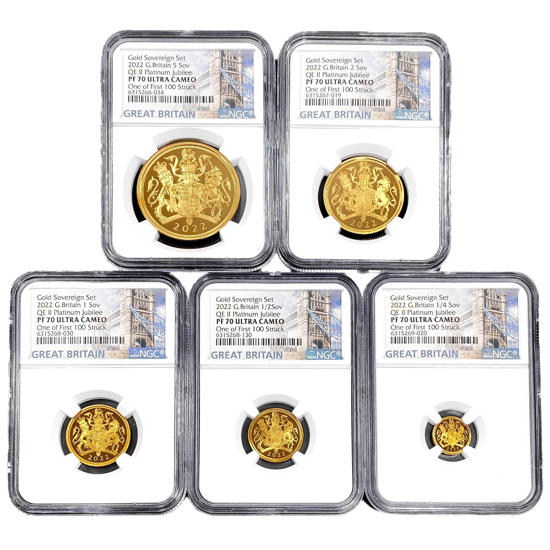2022 GB 5PC Gold Sovereign Set [5 Coins] NGC PF70