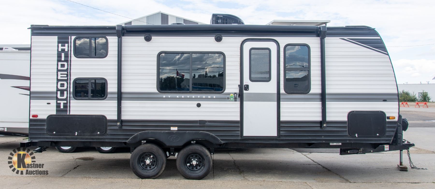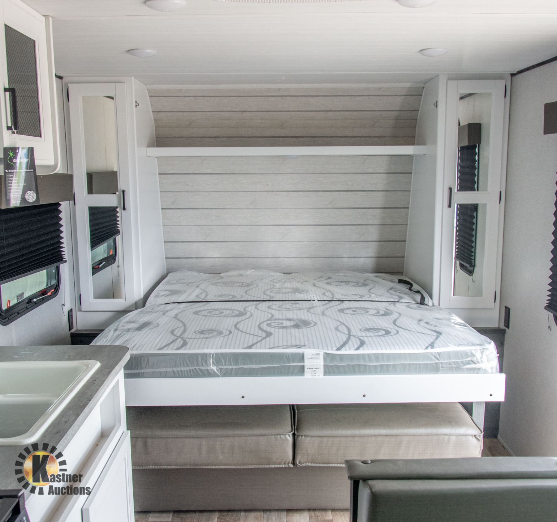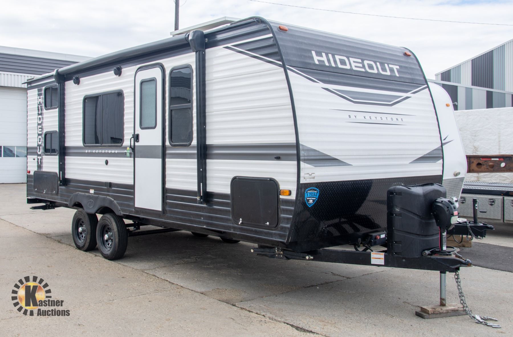 HOLIDAY TRAILER FEATURES POWER JACKS, POWER AWNING, POWERED BY SOLAR FLEX, PREWINTERIZED, MURPHY BED, PULL OUT COUCH, DOUBLE SINK, FURRION 3 BURNER STOVE/OVEN, FRIDGE FREEZER, JACK AND JILL BOOTH, DOUBLE SIZE BUNK BEDS, TOILET SHOWER/TUB & SINK, FURRION SOUND SYSTEM. RETAIL $39,999.00 *NO KEYS*