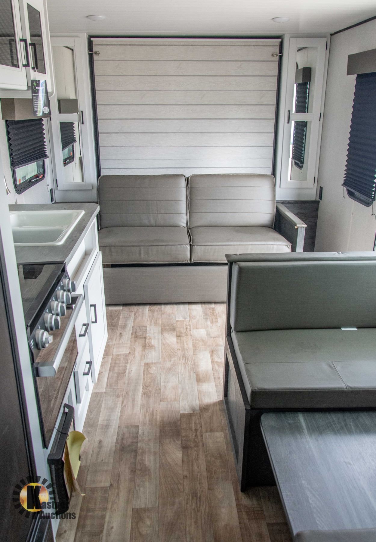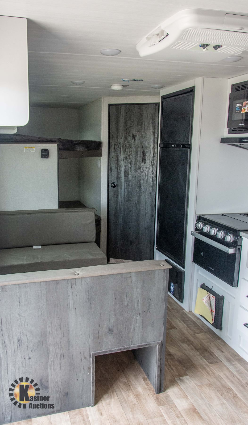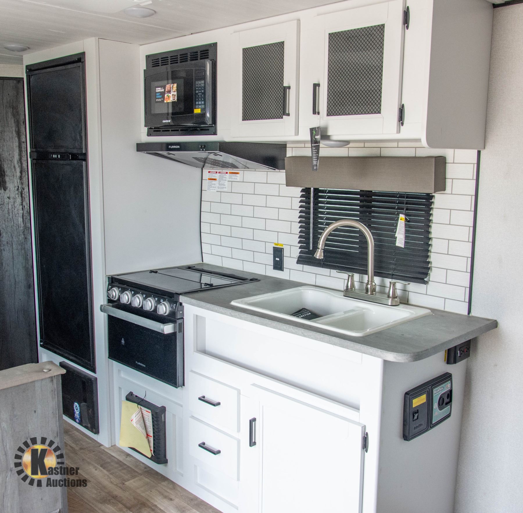 HOLIDAY TRAILER FEATURES POWER JACKS, POWER AWNING, POWERED BY SOLAR FLEX, PREWINTERIZED, MURPHY BED, PULL OUT COUCH, DOUBLE SINK, FURRION 3 BURNER STOVE/OVEN, FRIDGE FREEZER, JACK AND JILL BOOTH, DOUBLE SIZE BUNK BEDS, TOILET SHOWER/TUB & SINK, FURRION SOUND SYSTEM. RETAIL $39,999.00 *NO KEYS*