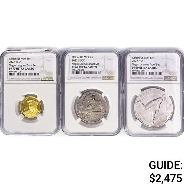 2022 Negro Leagues Proof Set (3) NGC PF UC