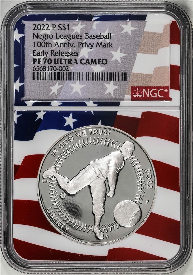 One 2022-P $1 Proof Negro Leagues Baseball Silver Dollar Coin NGC PF70 Ultra Cameo ER. NGC Certified.