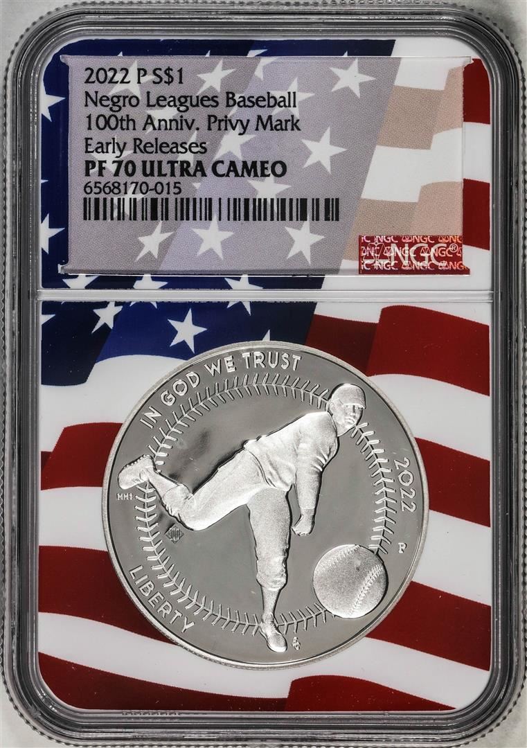 One 2022-P $1 Proof Negro Leagues Baseball Silver Dollar Coin NGC PF70 Ultra Cameo ER. NGC Certified.