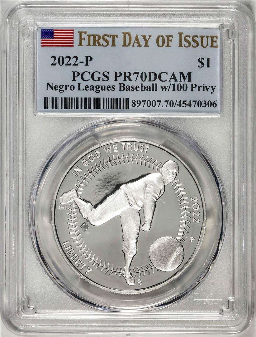 2022-P $1 Proof Negro Leagues Baseball Silver Dollar Coin PCGS PR70DCAM FDOI