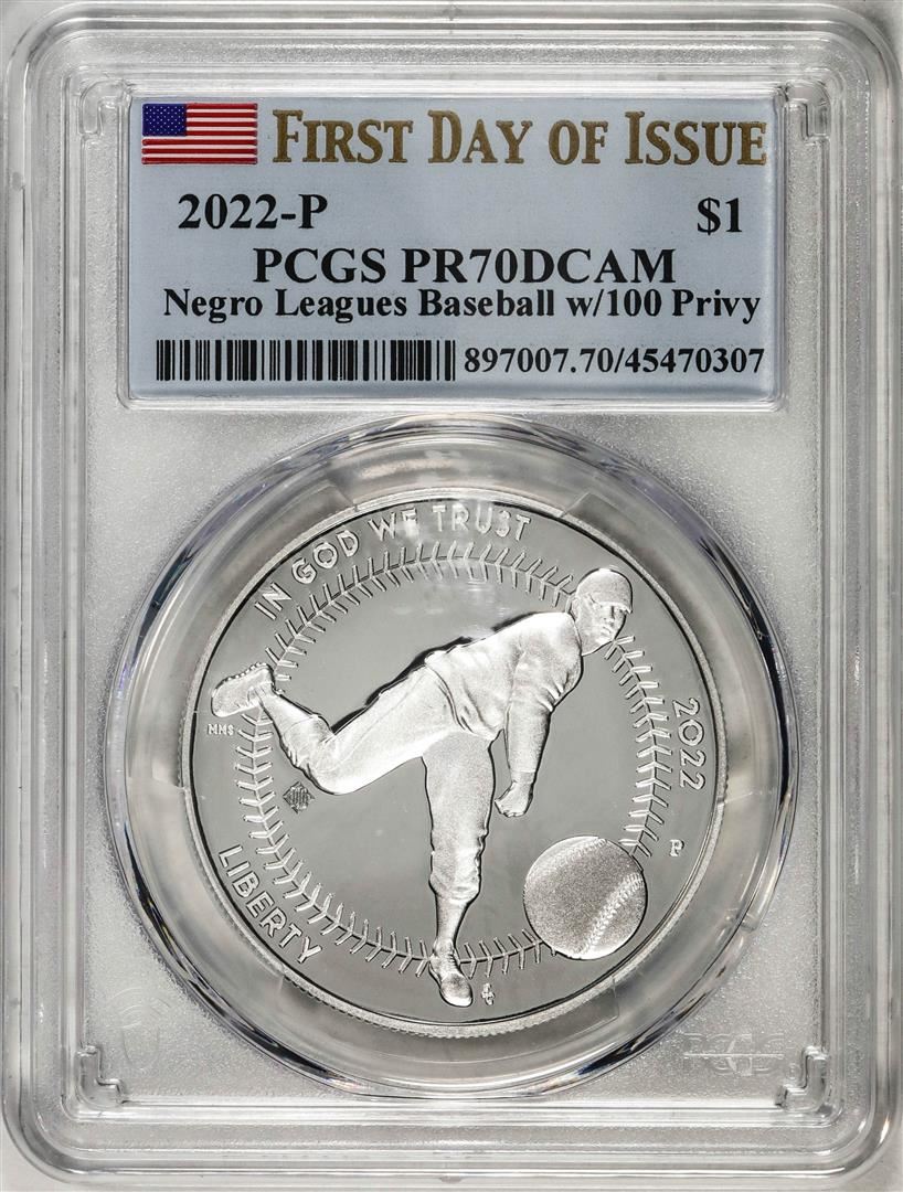 2022-P $1 Proof Negro Leagues Baseball Silver Dollar Coin PCGS PR70DCAM FDOI