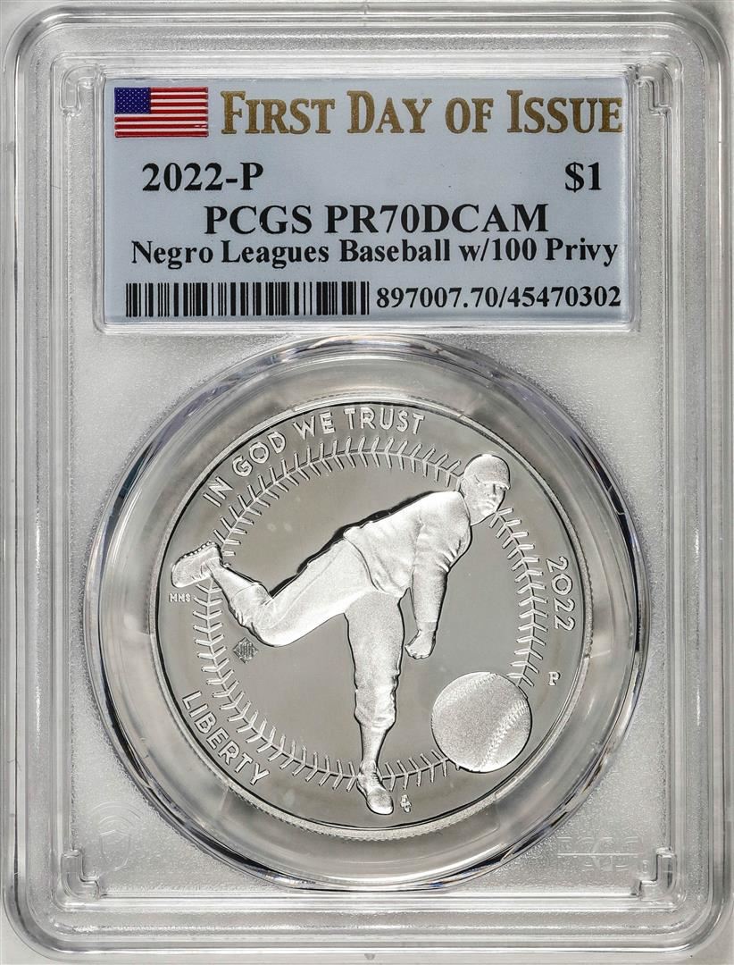 2022-P $1 Proof Negro Leagues Baseball Silver Dollar Coin PCGS PR70DCAM FDOI