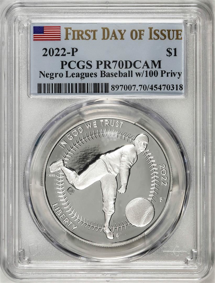 2022-P $1 Proof Negro Leagues Baseball Silver Dollar Coin PCGS PR70DCAM FDOI