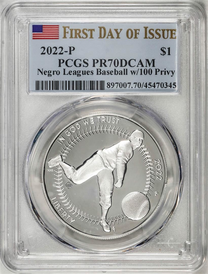 2022-P $1 Proof Negro Leagues Baseball Silver Dollar Coin PCGS PR70DCAM FDOI