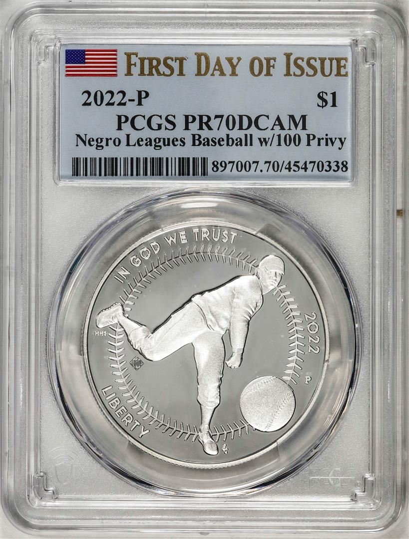 2022-P $1 Proof Negro Leagues Baseball Silver Dollar Coin PCGS PR70DCAM FDOI