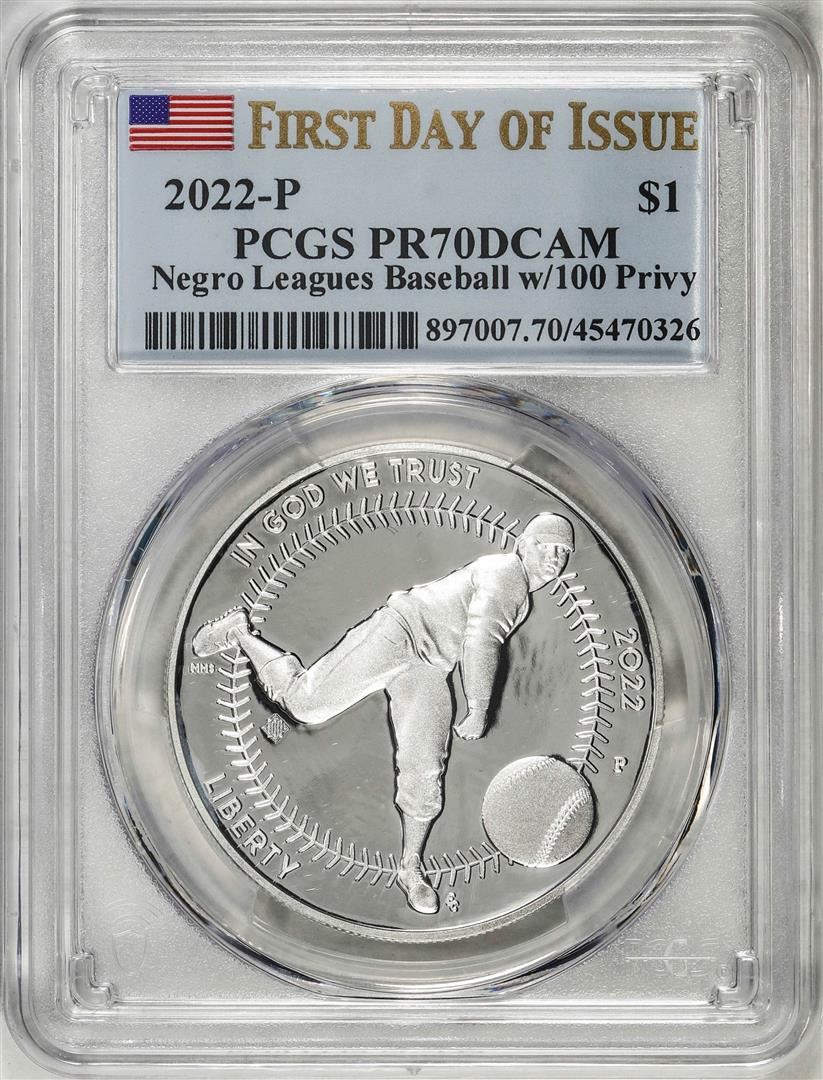 2022-P $1 Proof Negro Leagues Baseball Silver Dollar Coin PCGS PR70DCAM FDOI