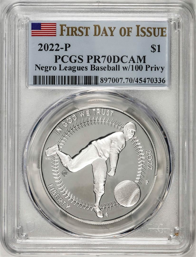 2022-P $1 Proof Negro Leagues Baseball Silver Dollar Coin PCGS PR70DCAM FDOI
