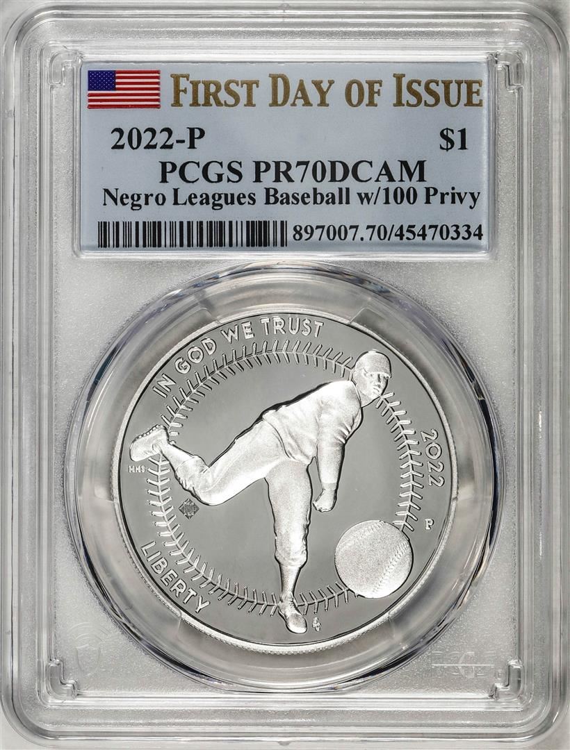 2022-P $1 Proof Negro Leagues Baseball Silver Dollar Coin PCGS PR70DCAM FDOI