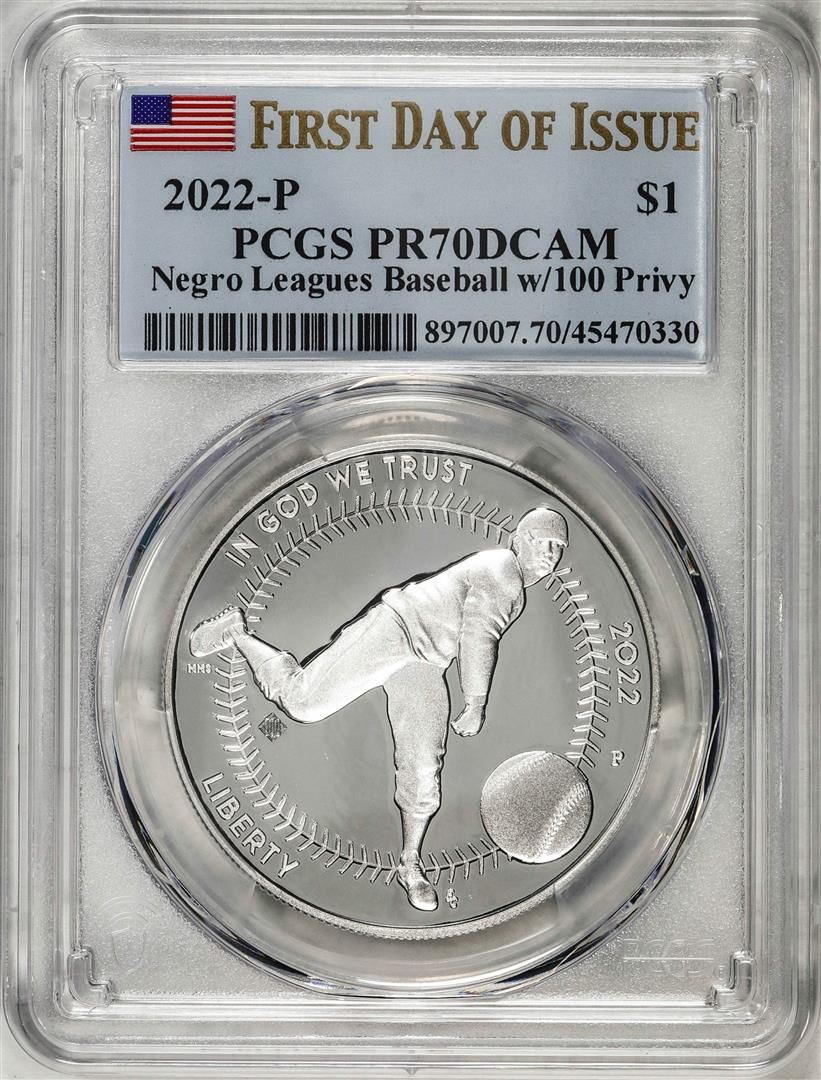 2022-P $1 Proof Negro Leagues Baseball Silver Dollar Coin PCGS PR70DCAM FDOI
