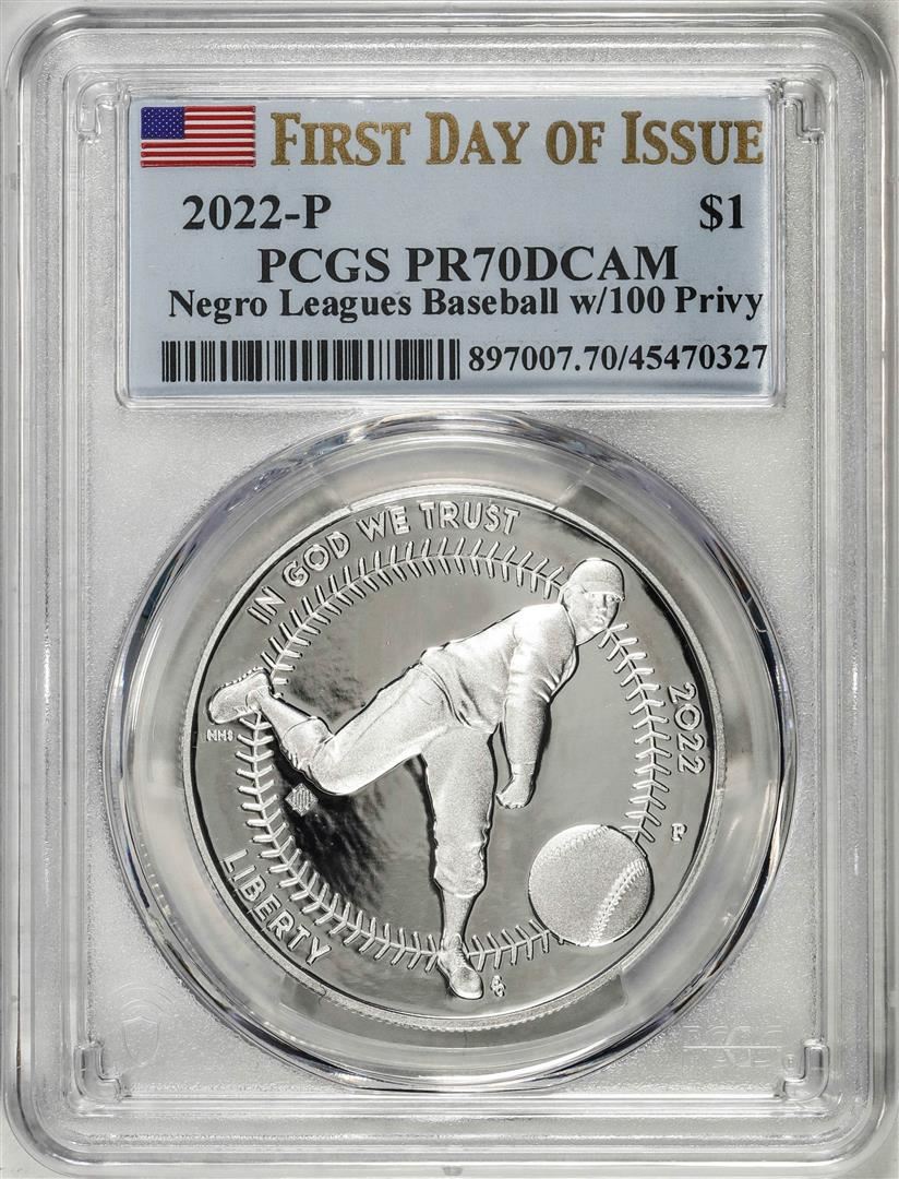 2022-P $1 Proof Negro Leagues Baseball Silver Dollar Coin PCGS PR70DCAM FDOI