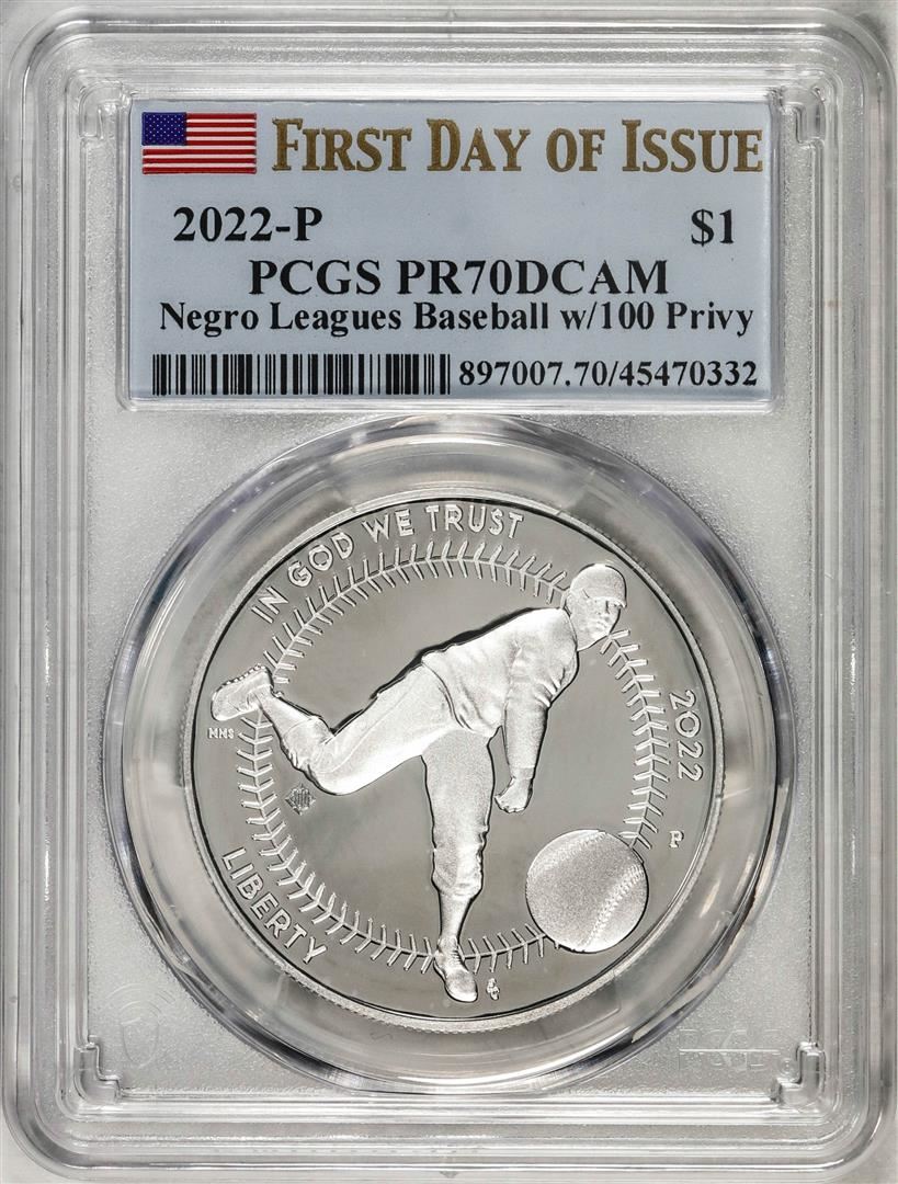 2022-P $1 Proof Negro Leagues Baseball Silver Dollar Coin PCGS PR70DCAM FDOI