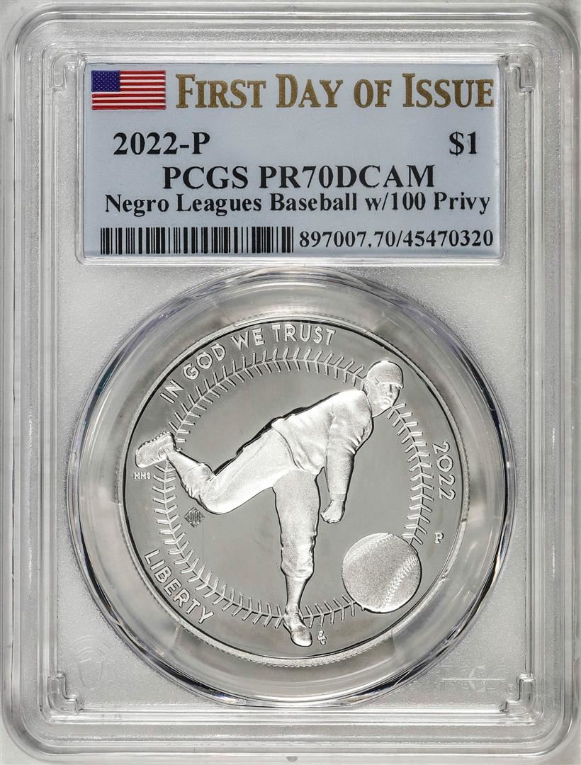 2022-P $1 Proof Negro Leagues Baseball Silver Dollar Coin PCGS PR70DCAM FDOI