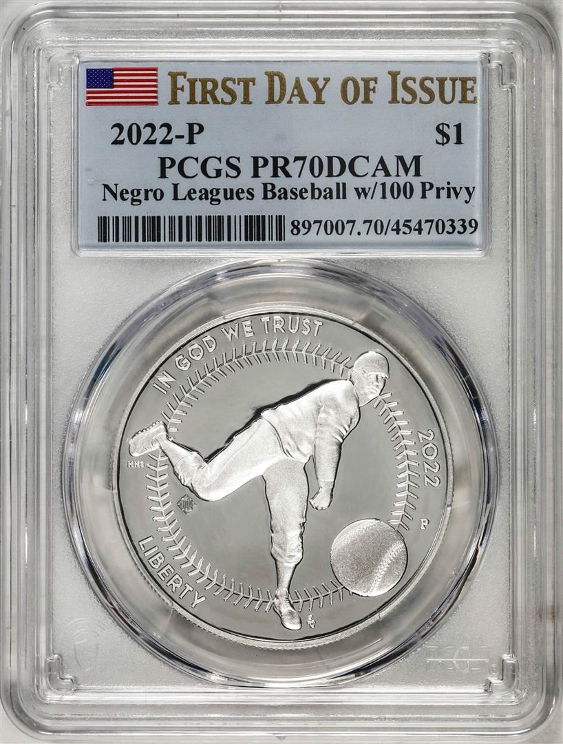 2022-P $1 Proof Negro Leagues Baseball Silver Dollar Coin PCGS PR70DCAM FDOI