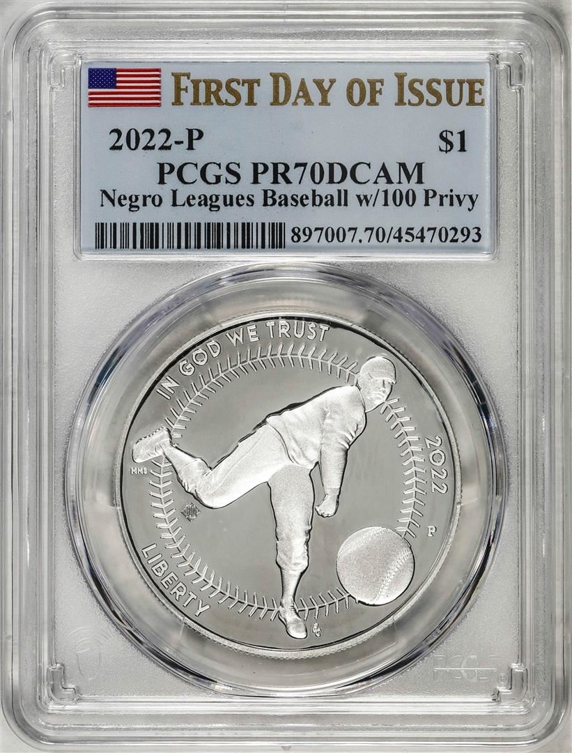 2022-P $1 Proof Negro Leagues Baseball Silver Dollar Coin PCGS PR70DCAM FDOI