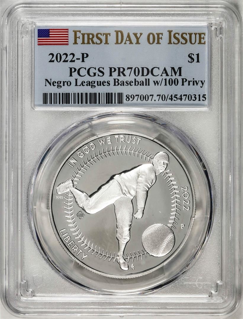 2022-P $1 Proof Negro Leagues Baseball Silver Dollar Coin PCGS PR70DCAM FDOI