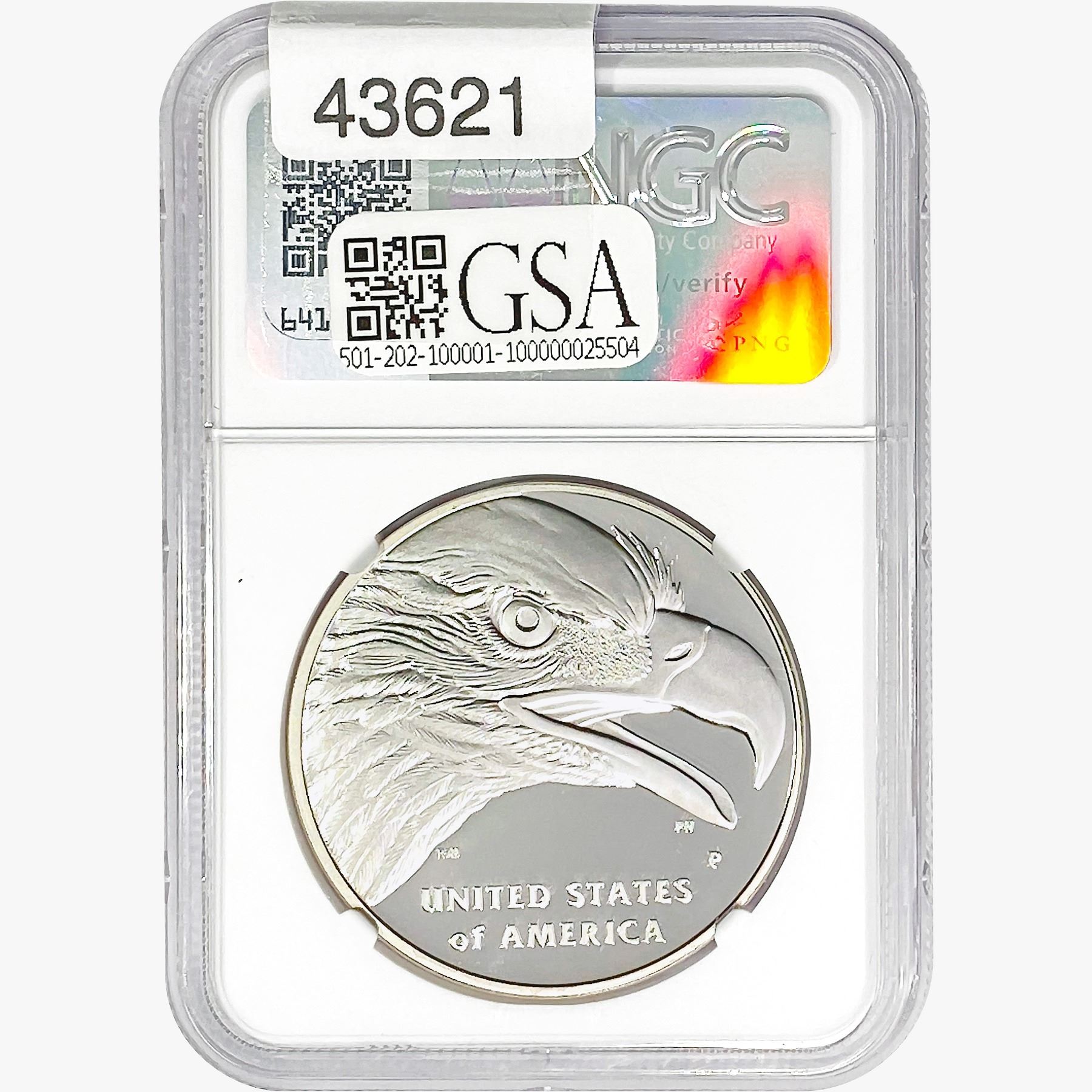 e. Coins sold referencing a third-party grading service are sold “AS IS” without any express or implied warranty, except for a guarantee by GSA that they are genuine. Removal or alteration of the holder, voids all of Bidder’s claims concerning that Product. Certain warranties may be available from the grading services and Bidders are referred to them for further details: Numismatic Guaranty Corporation (NGC), PO Box 4776, Sarasota, FL 34230, www.ngccoin.com/services/writtenguarantee.asp; Professional Coin Grading Services (PCGS), PO Box 9458, Newport Beach, CA 92658, www.pcgs.com/guarantee.html; ANACS, 6555 S. Kenton St., Ste. 303, Englewood, CO 80111; and Independent Coin Grading Co. (ICG), 7901 East Bellview, Ave., Suite 50, Englewood, CO 80111.
