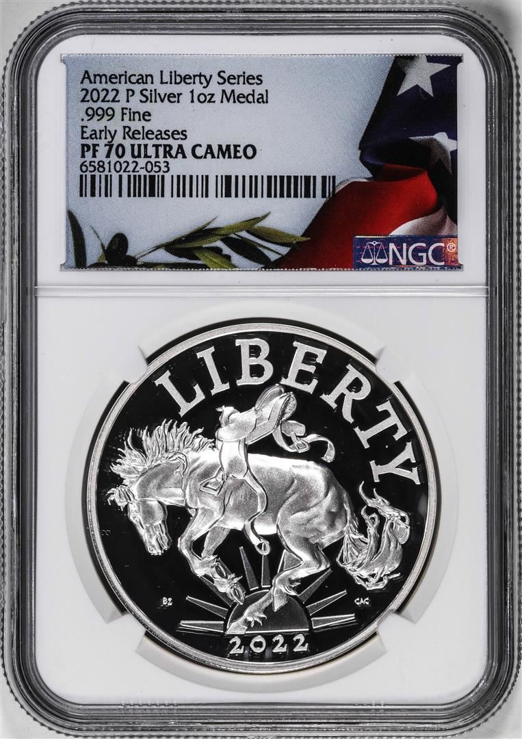 One 2022-P Liberty Series 1oz Silver Medal NGC PF70 Ultra Cameo Early Releases. NGC Certified.